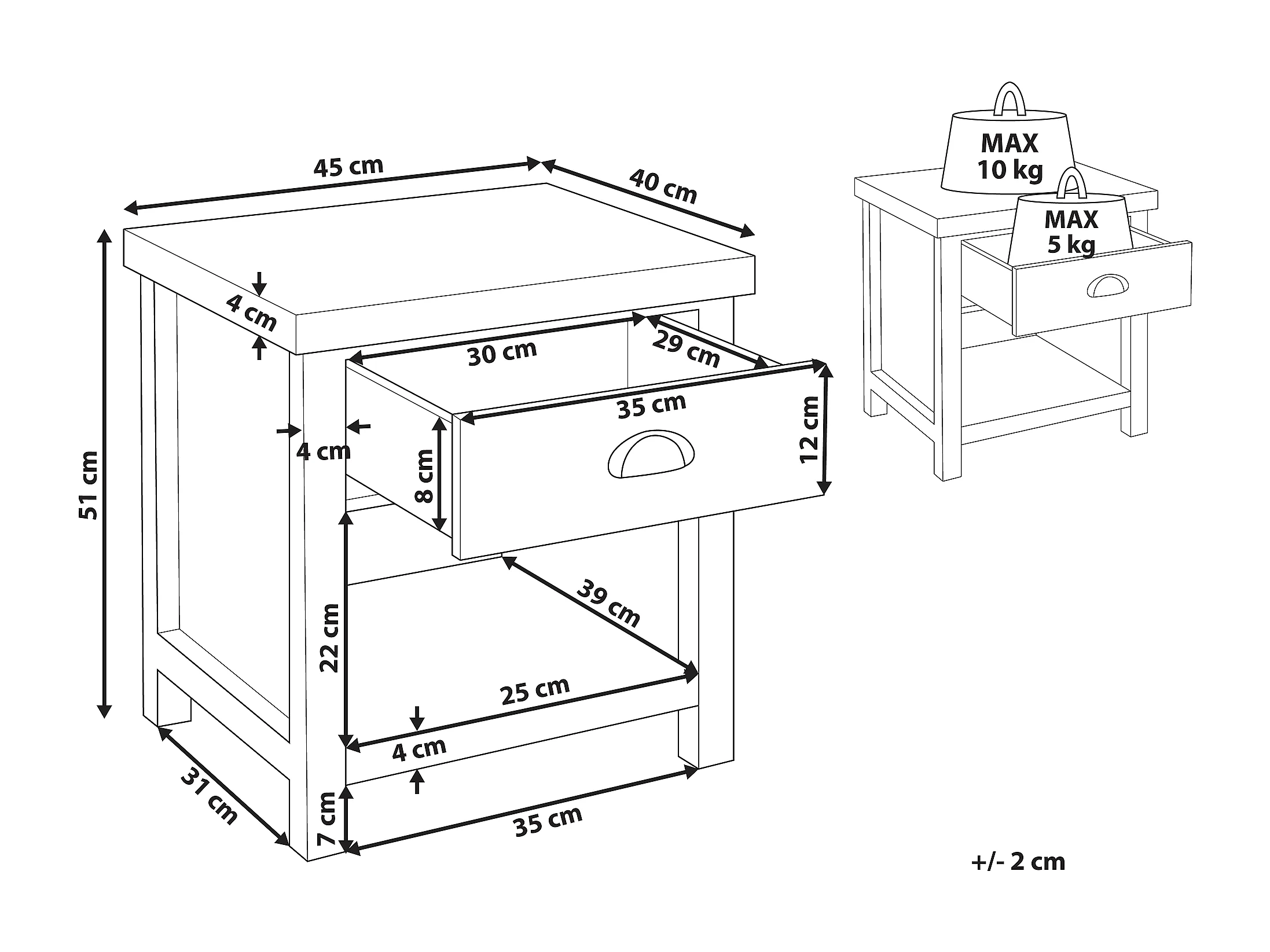 Table de nuit à 1 tiroir Braun Braun CLIO