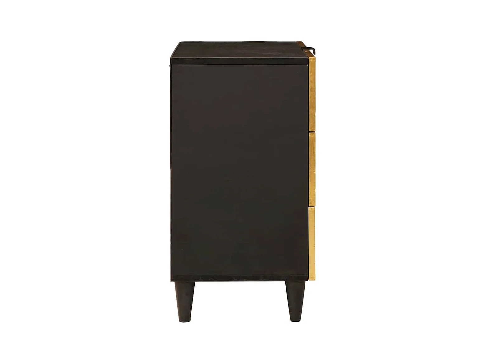 Table de chevet noir 50x33x62 cm bois de manguier massif brut