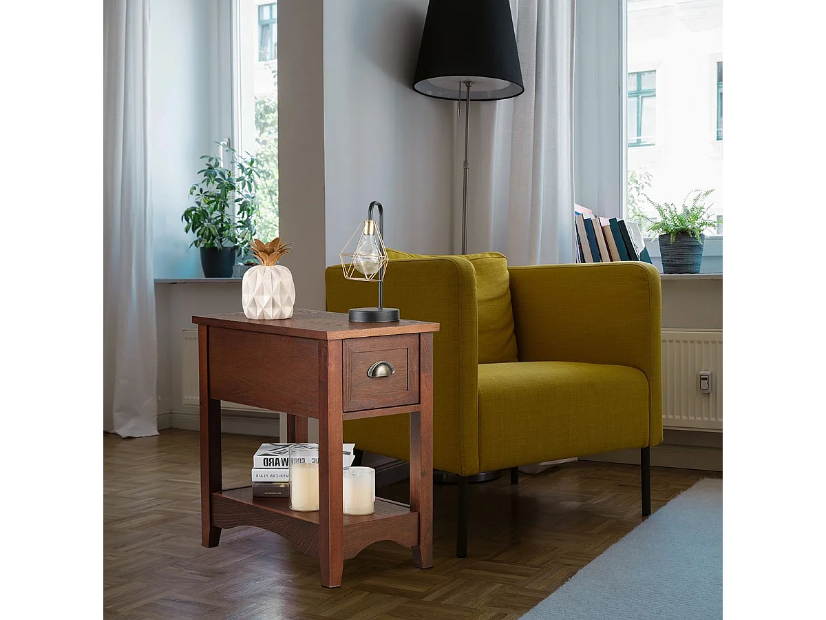 Table de Chevet avec Tiroir, Table d'Appoint Pieds en Bois d'Hévéa, Bout de Canapé Rétro pour Chambre, Salon, 56 x 33 x 58,5 cm (Noyer, Lot de 1)