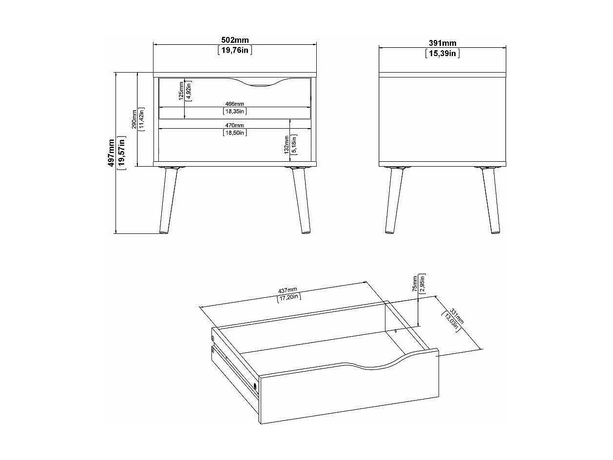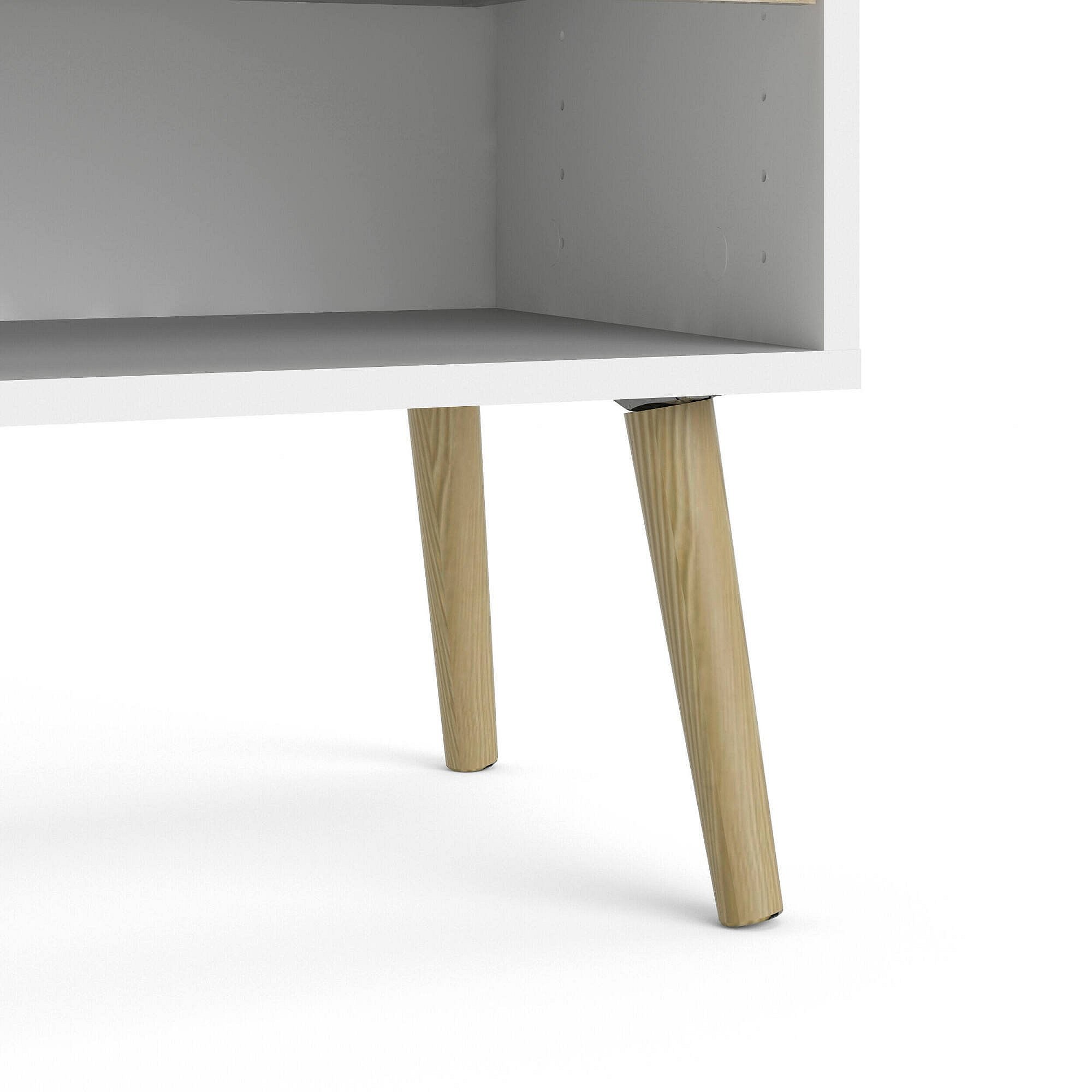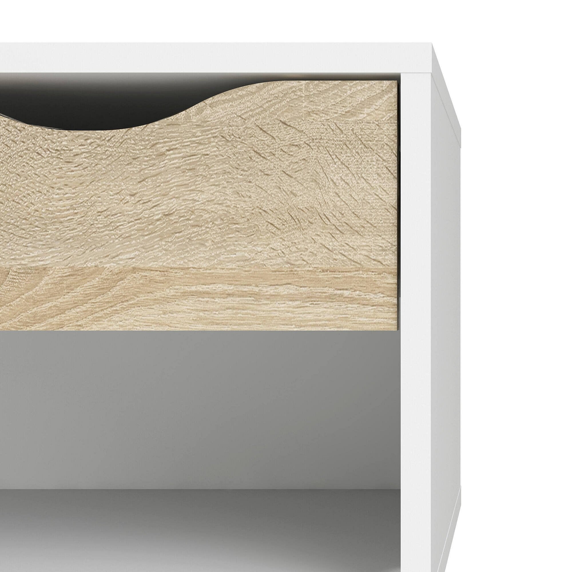 Table de chevet avec un tiroir et un compartiment de rangement, couleur blanc et chêne, Dimensions 50 x 49 x 39 cm