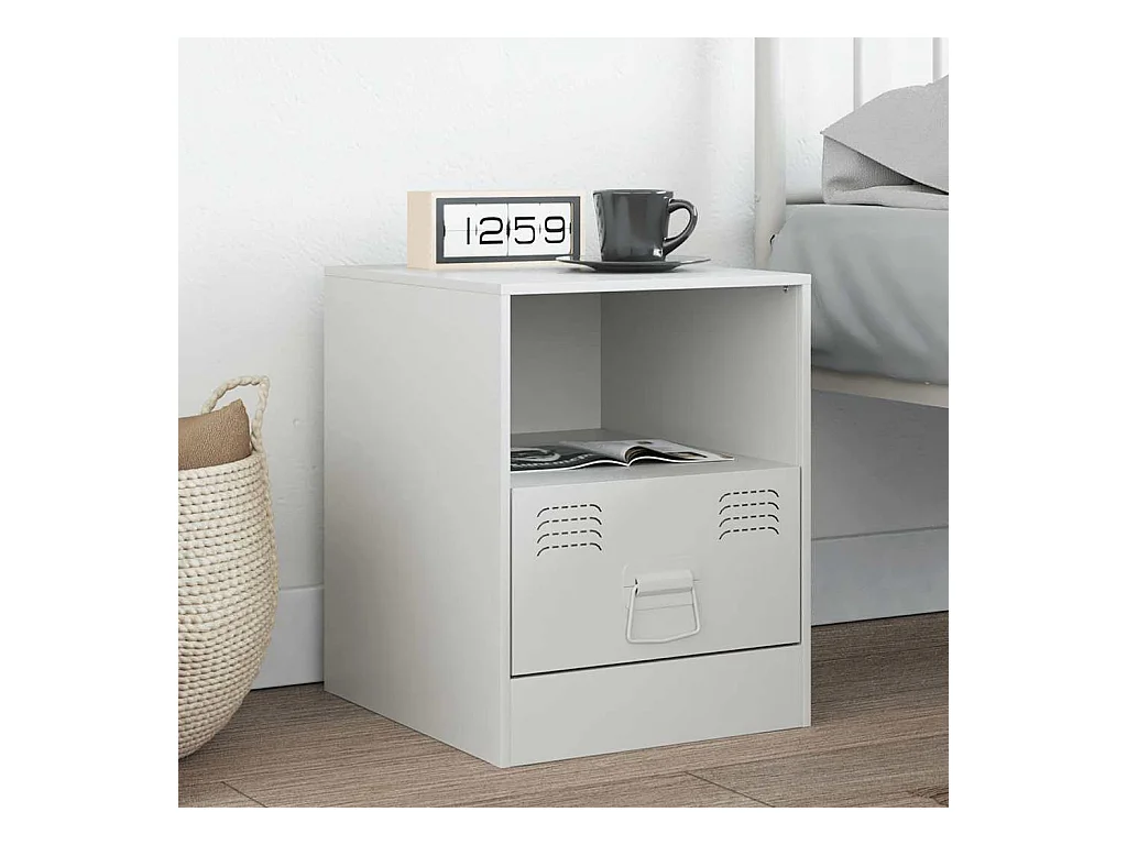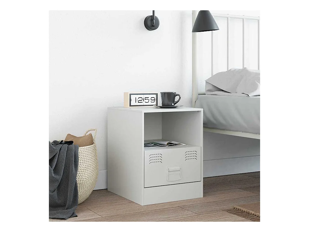 Table de chevet blanc 36x39x50,5 cm acier laminé à froid