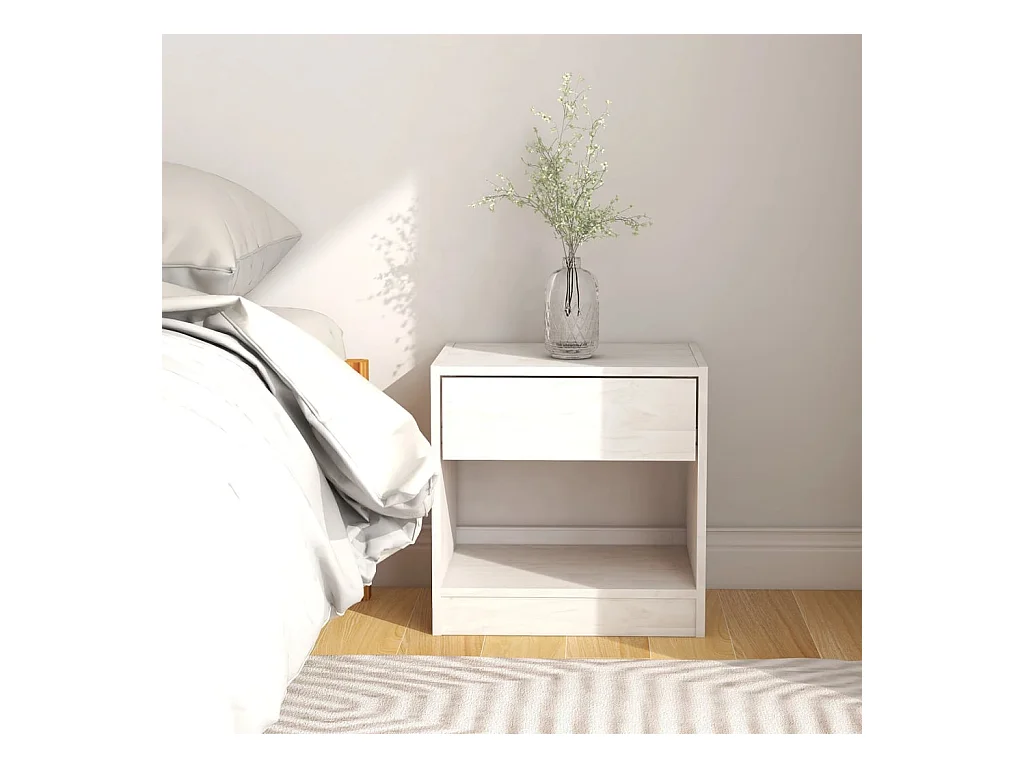 Table de chevet blanc 40x31x35,5 cm bois de pin massif