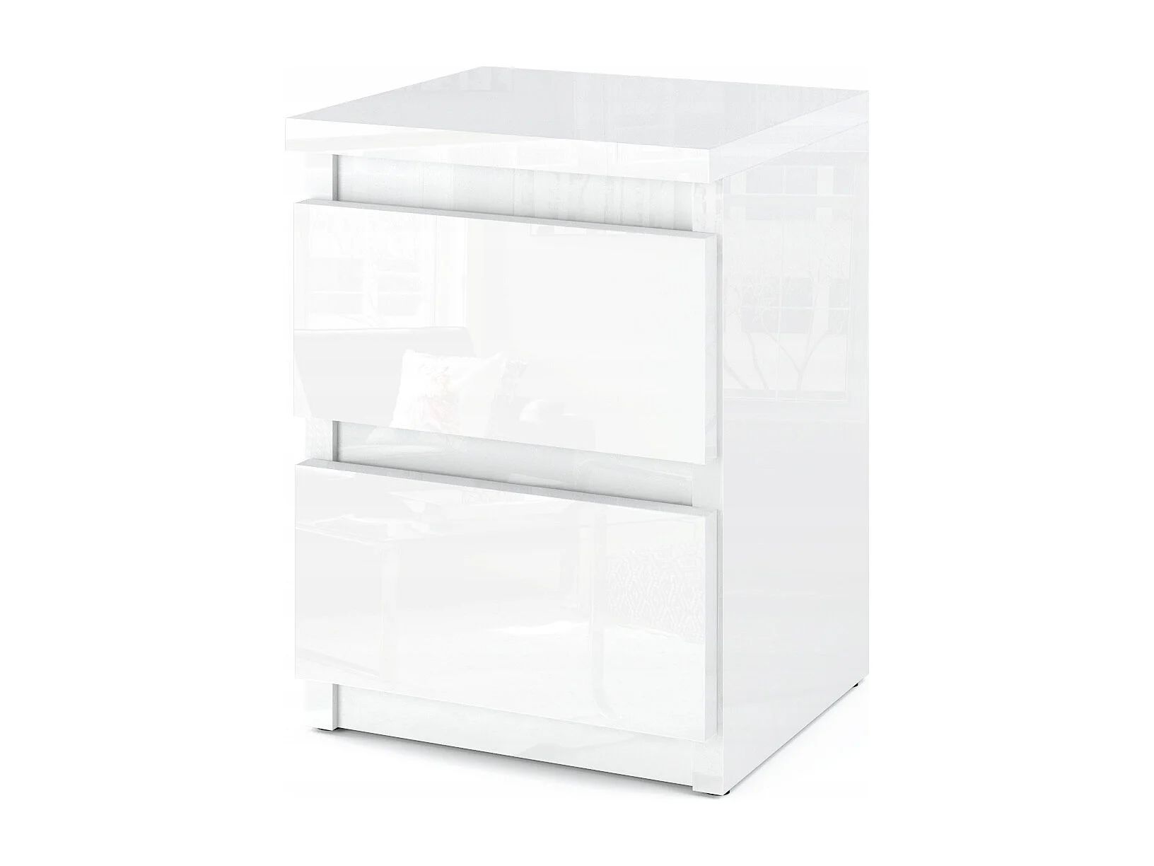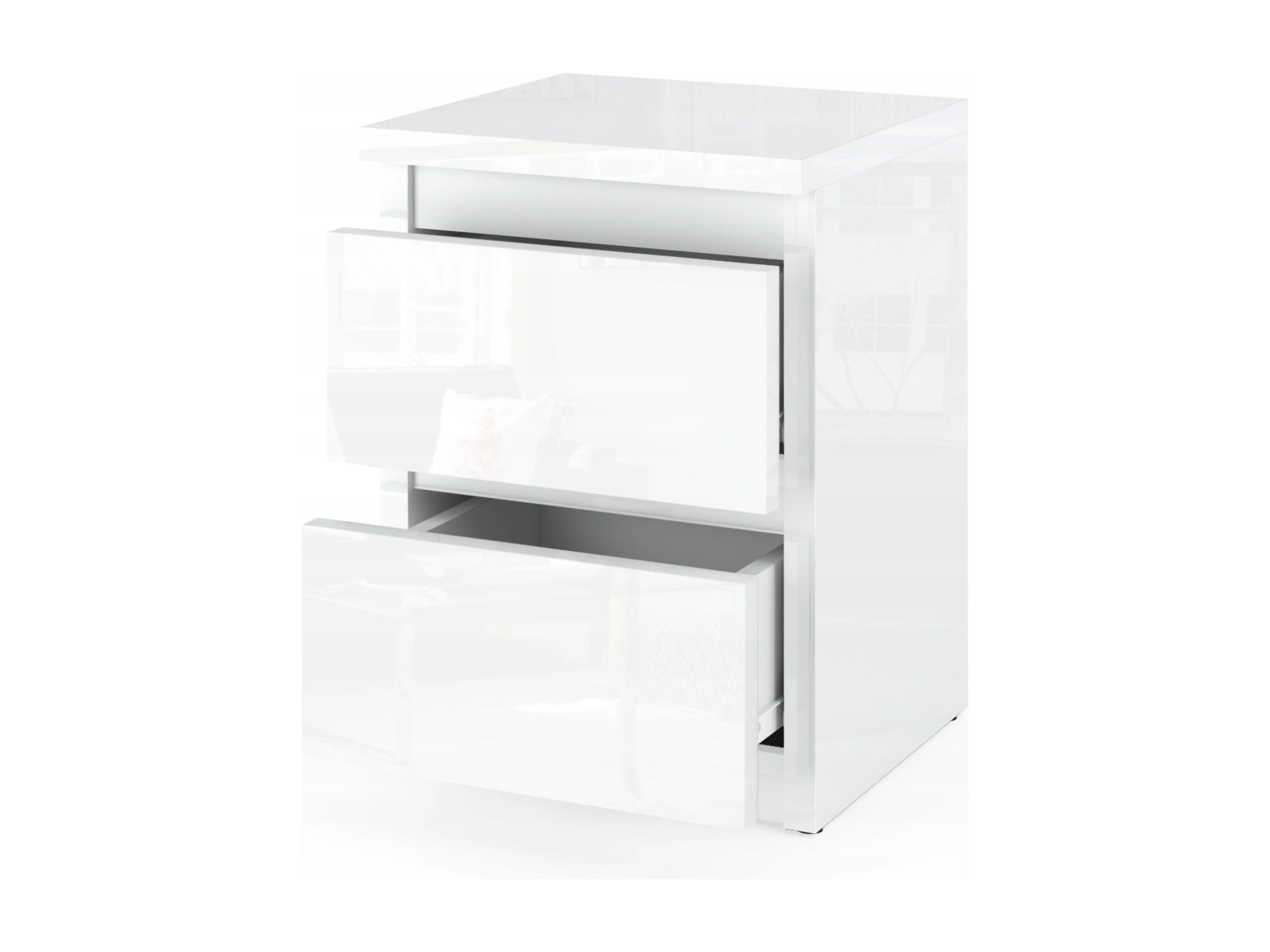 Table de chevet Blanc brillant - 40 cm – 2 tiroirs + étagère, meuble de nuit pour chambre à coucher