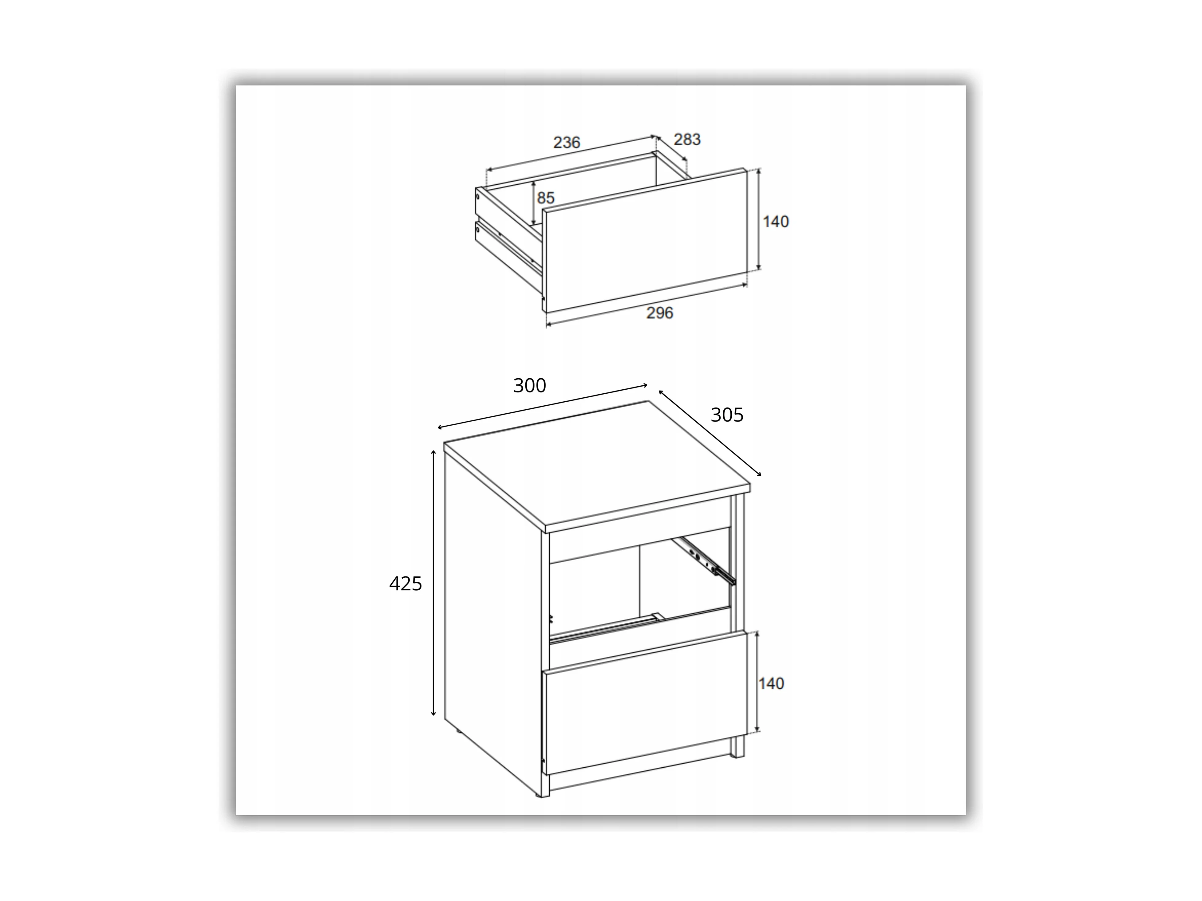 Chevet 2 Tiroirs L40 cm - COPENHAGUE