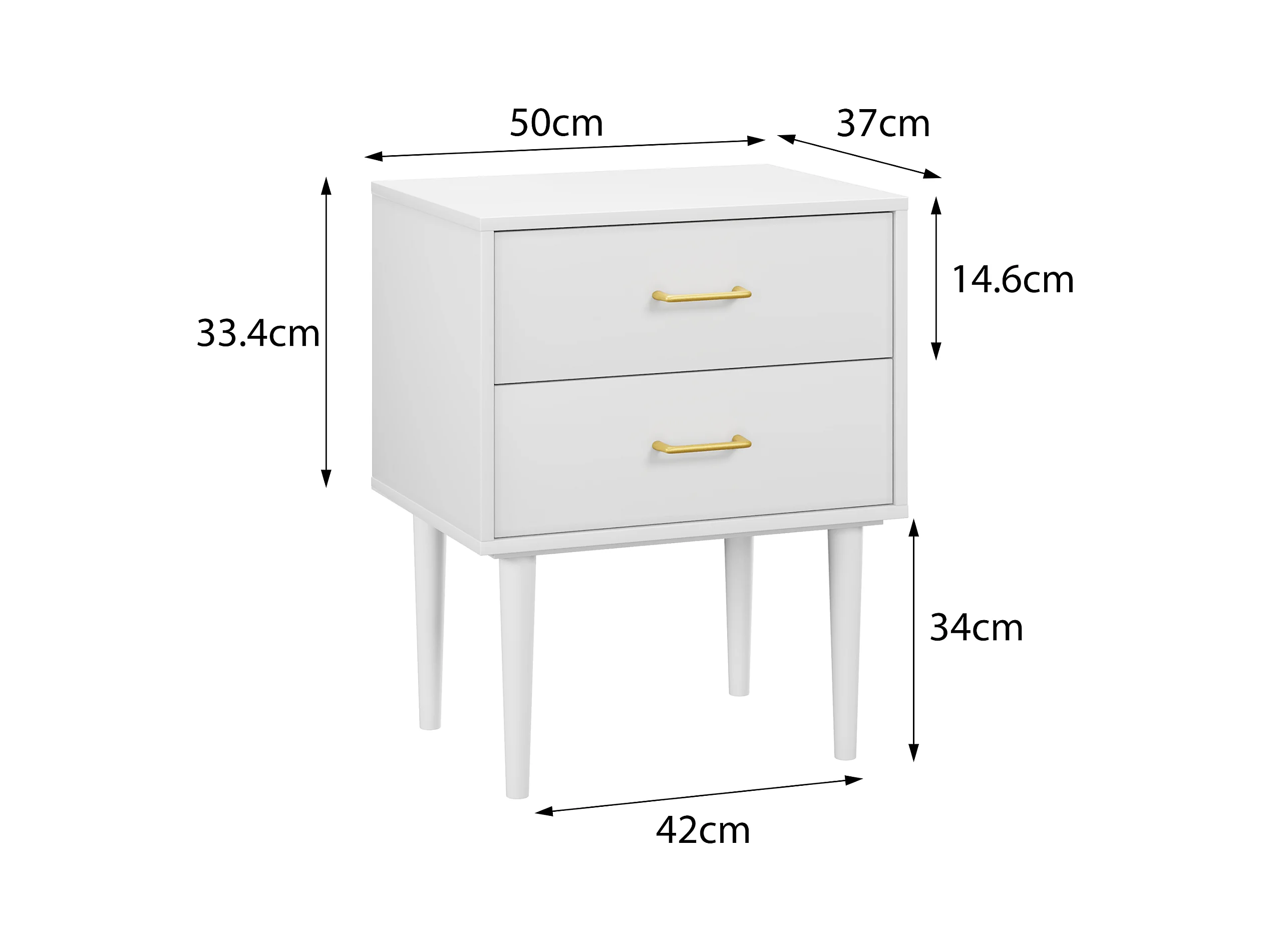 Table de chevet blanche à 2 tiroirs, table de chevet moderne avec pieds en bois, 1 pièce (67,4cmxL 50cmxP 37cm)