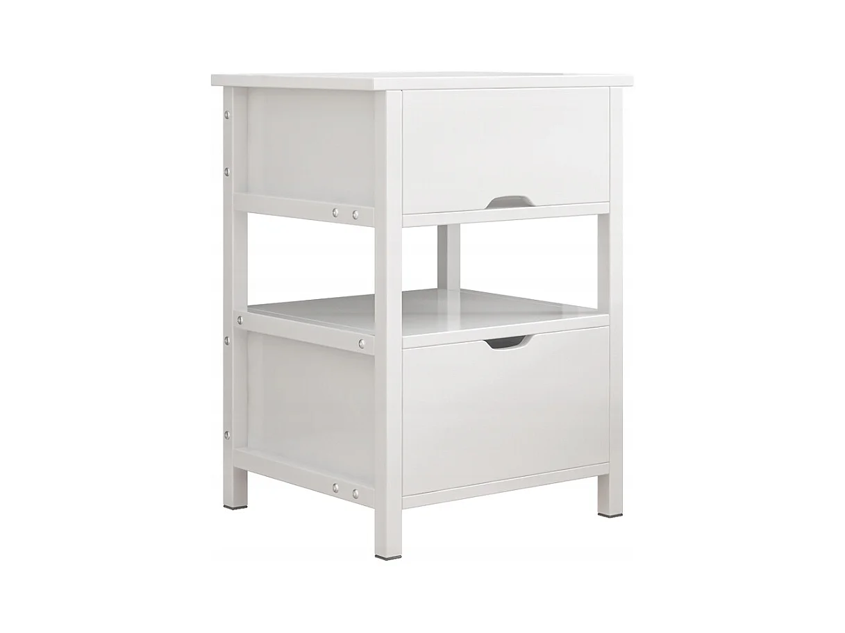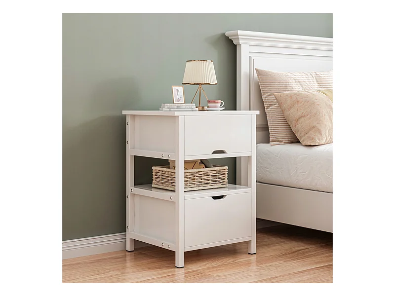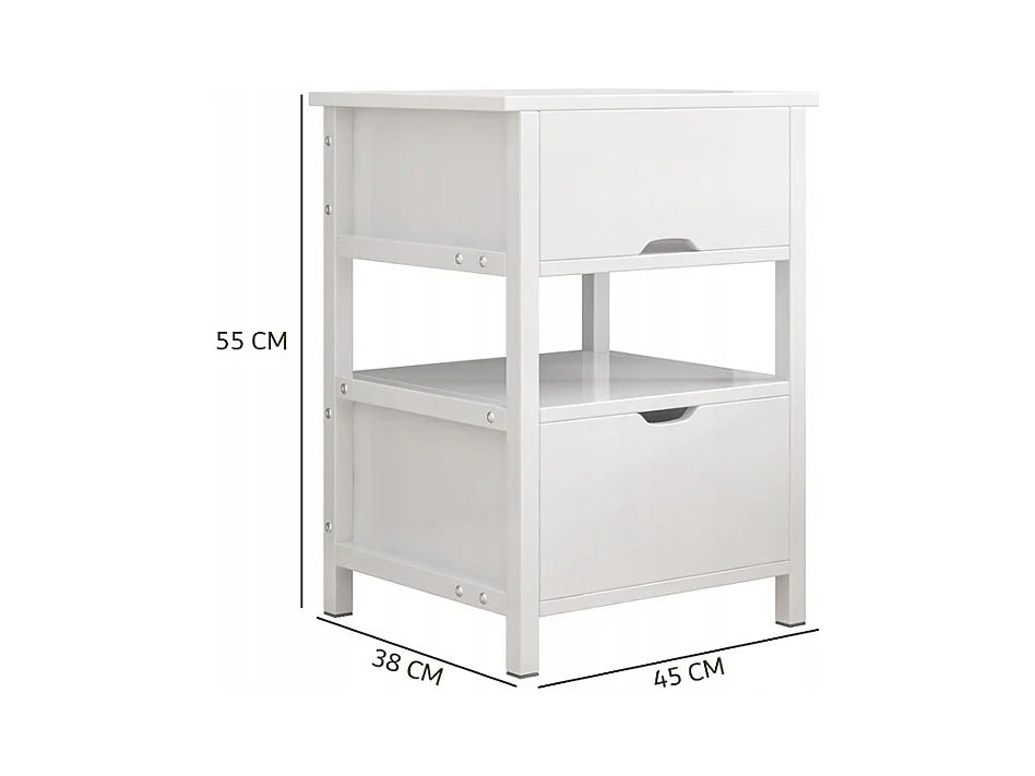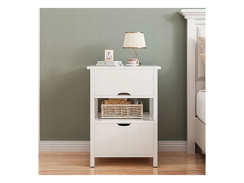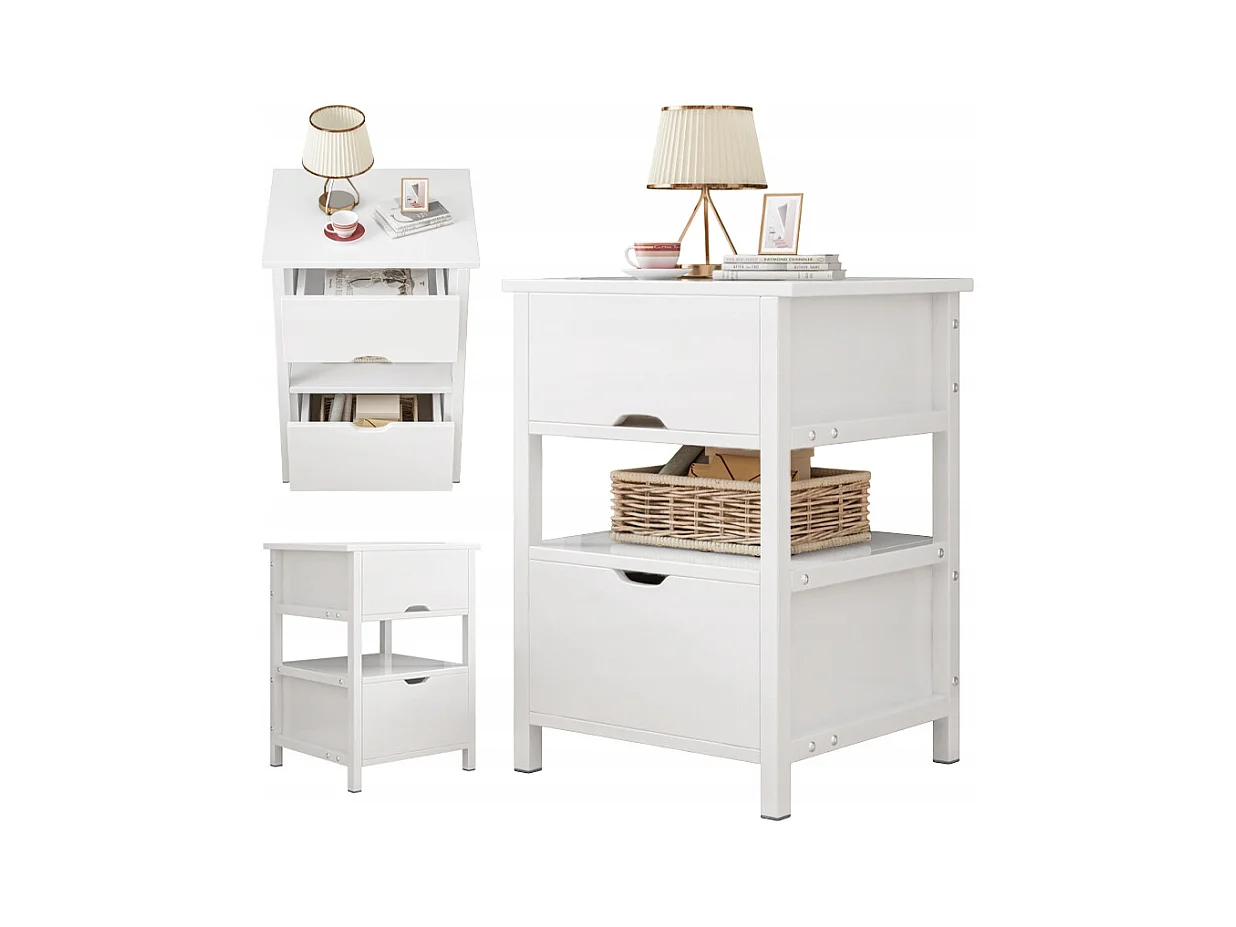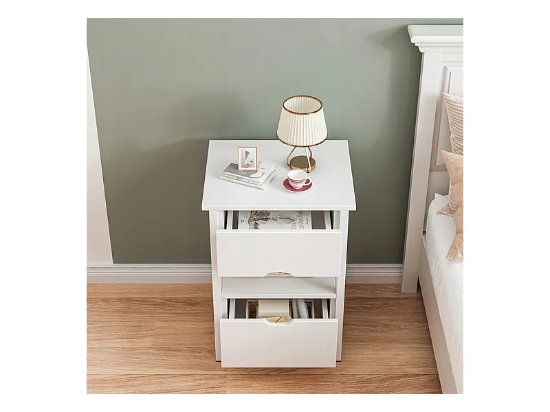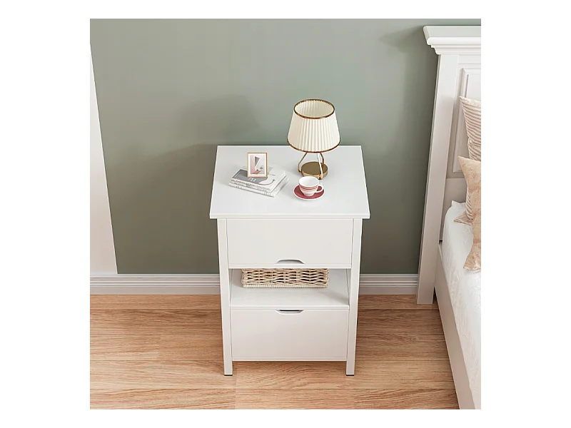 Table de nuit avec 2 tiroirs, design minimaliste, en contreplaqué, blanc (39.6x32.3x56 cm)
