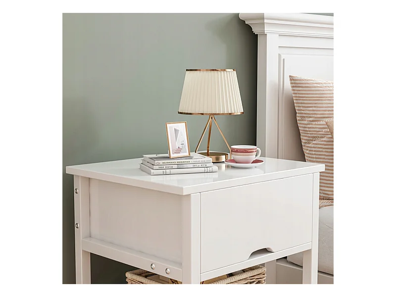 Table de nuit suspendue, avec tiroir et étagère ouverte, bois, blanc (39.8x35x31.6 cm)