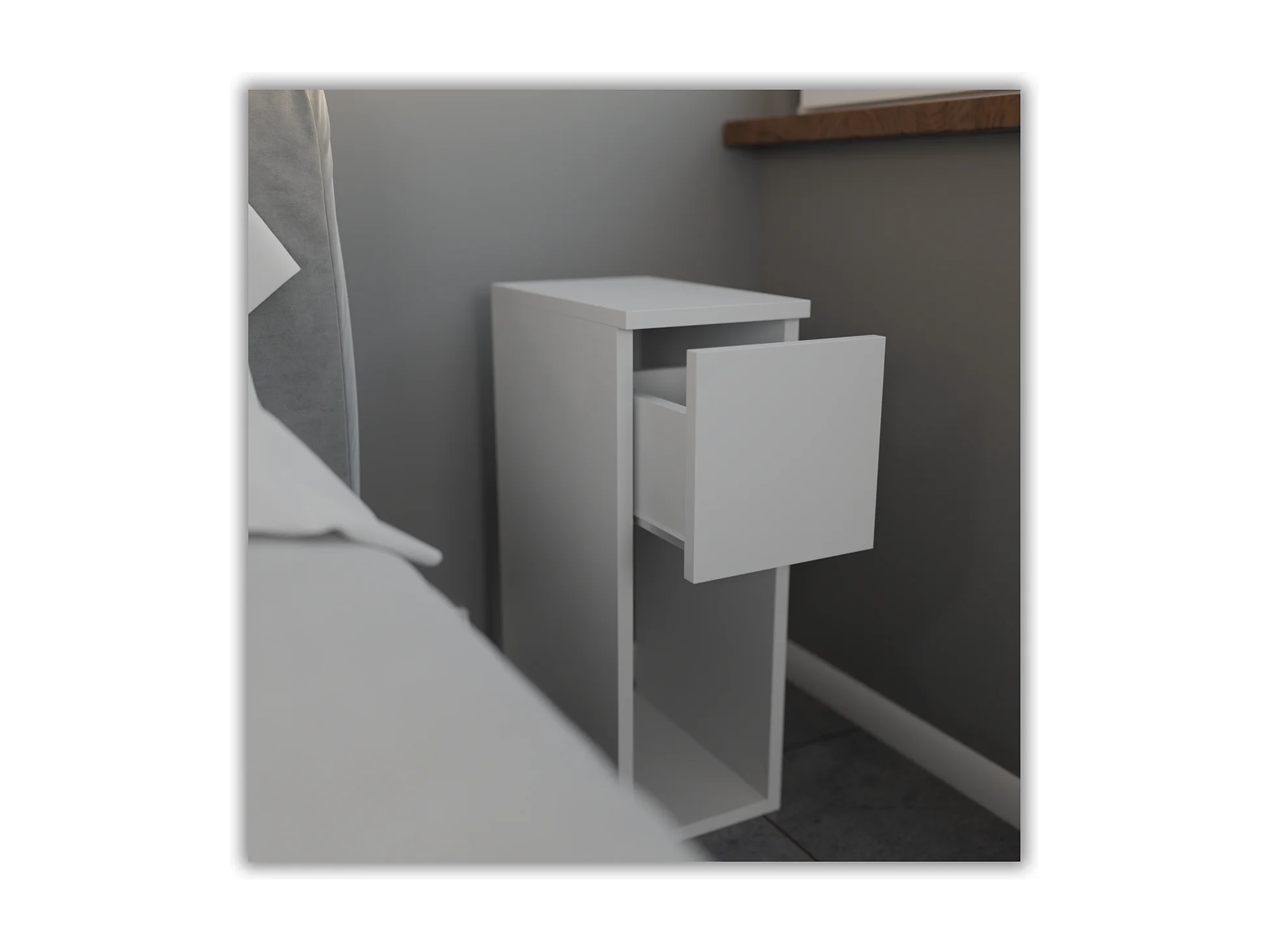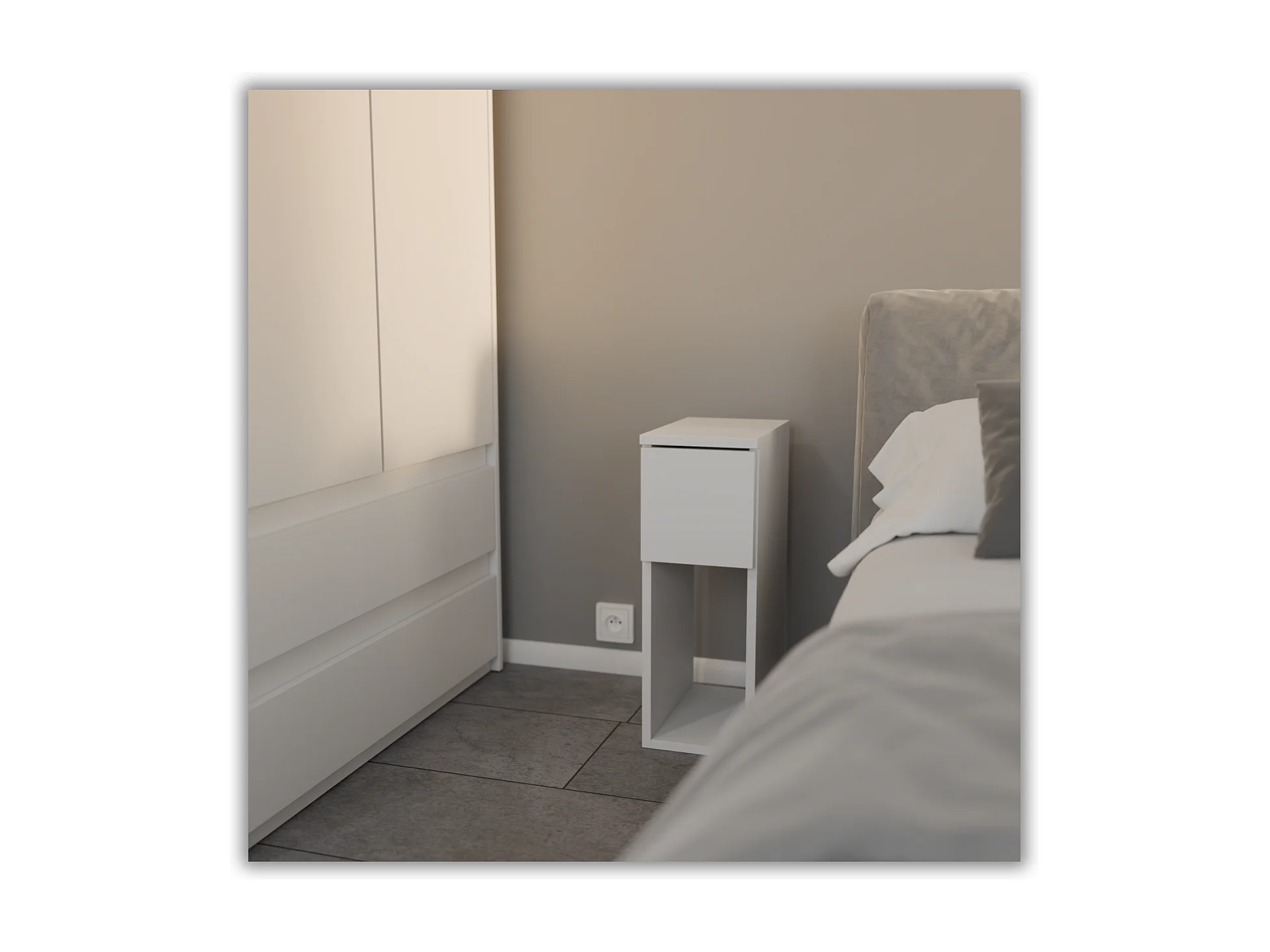 Table de chevet Blanche, étroite 20 cm, petite table de nuit loft compacte pour chambre