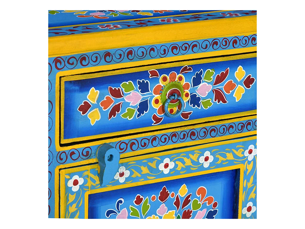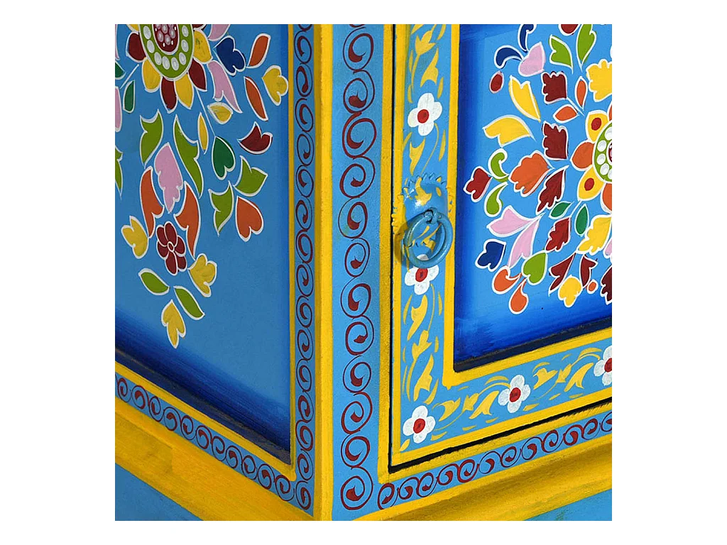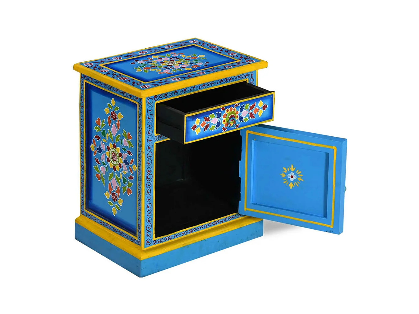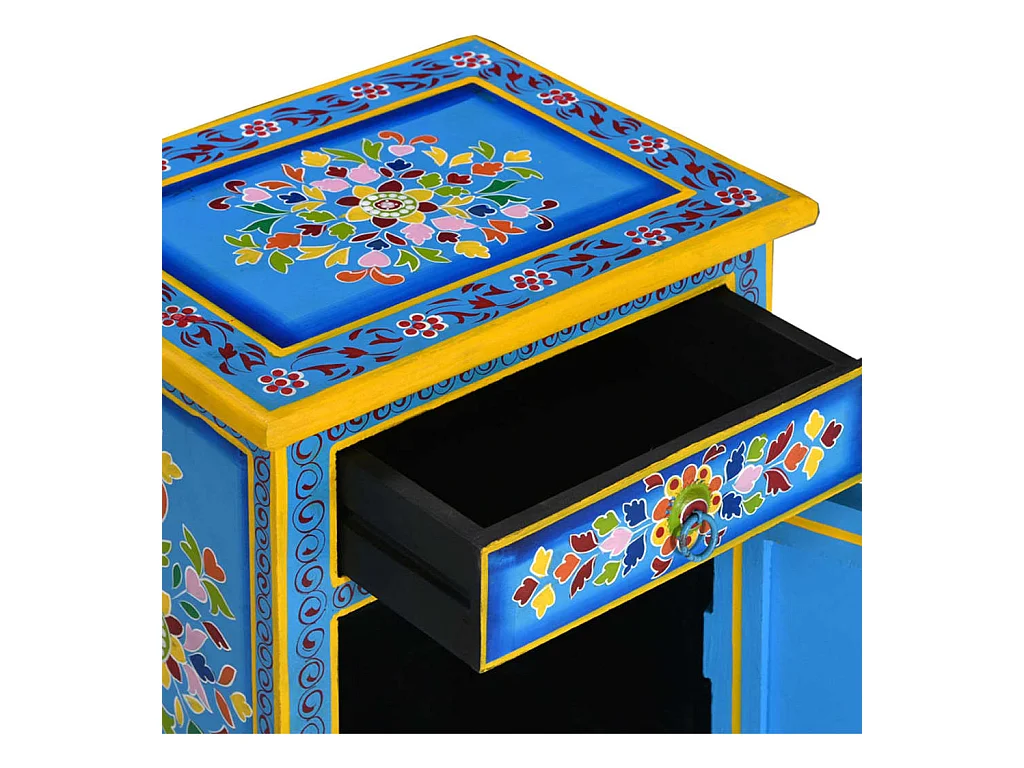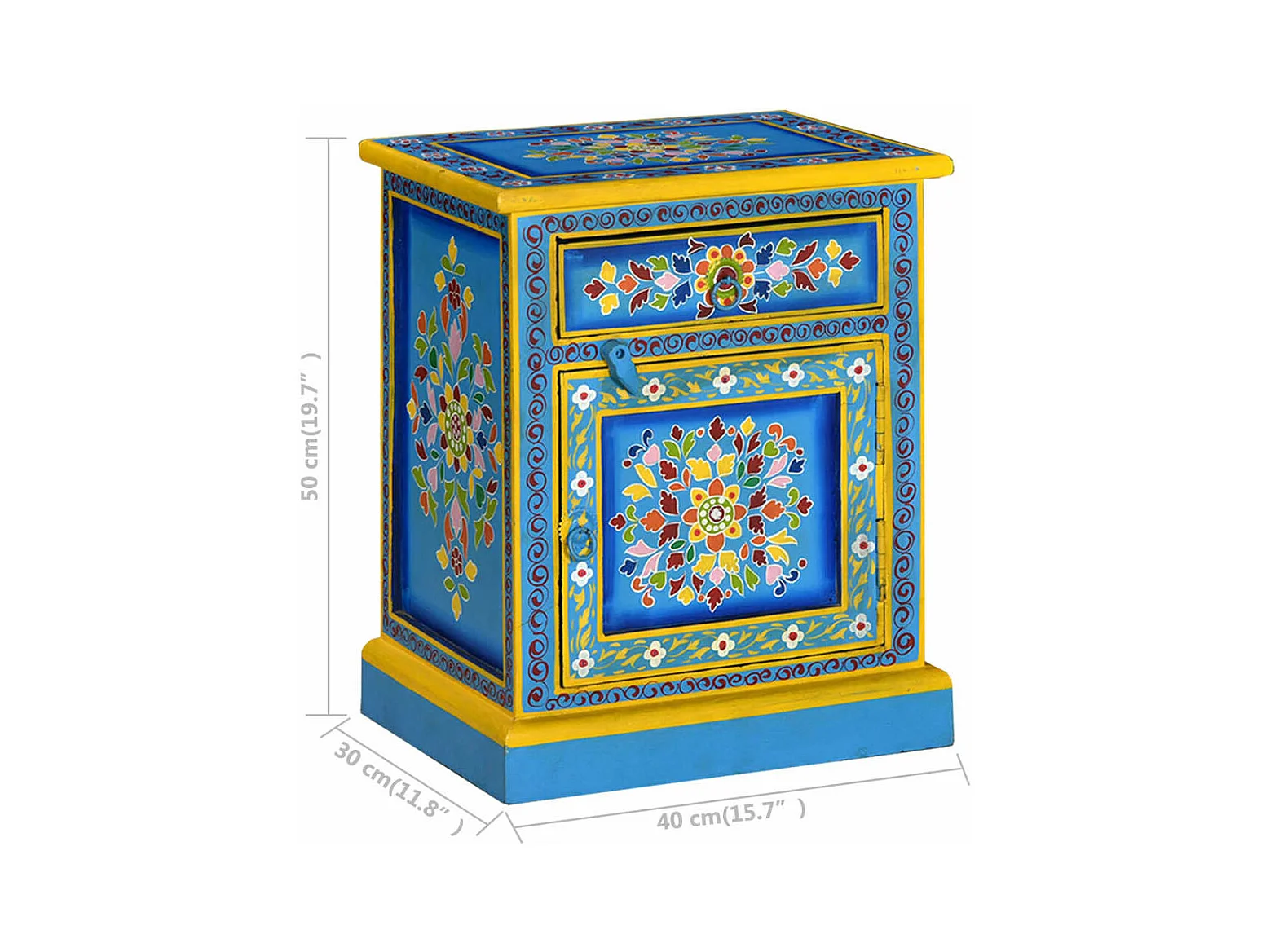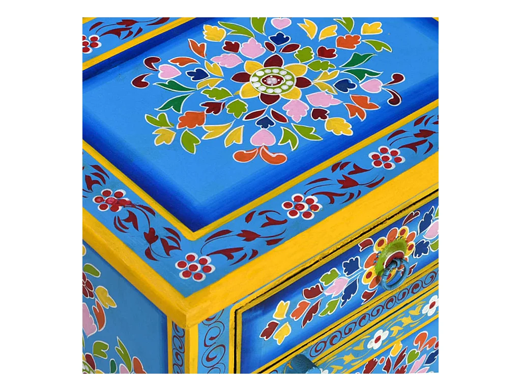 Table de chevet Bois de manguier Turquoise Peinture à la main