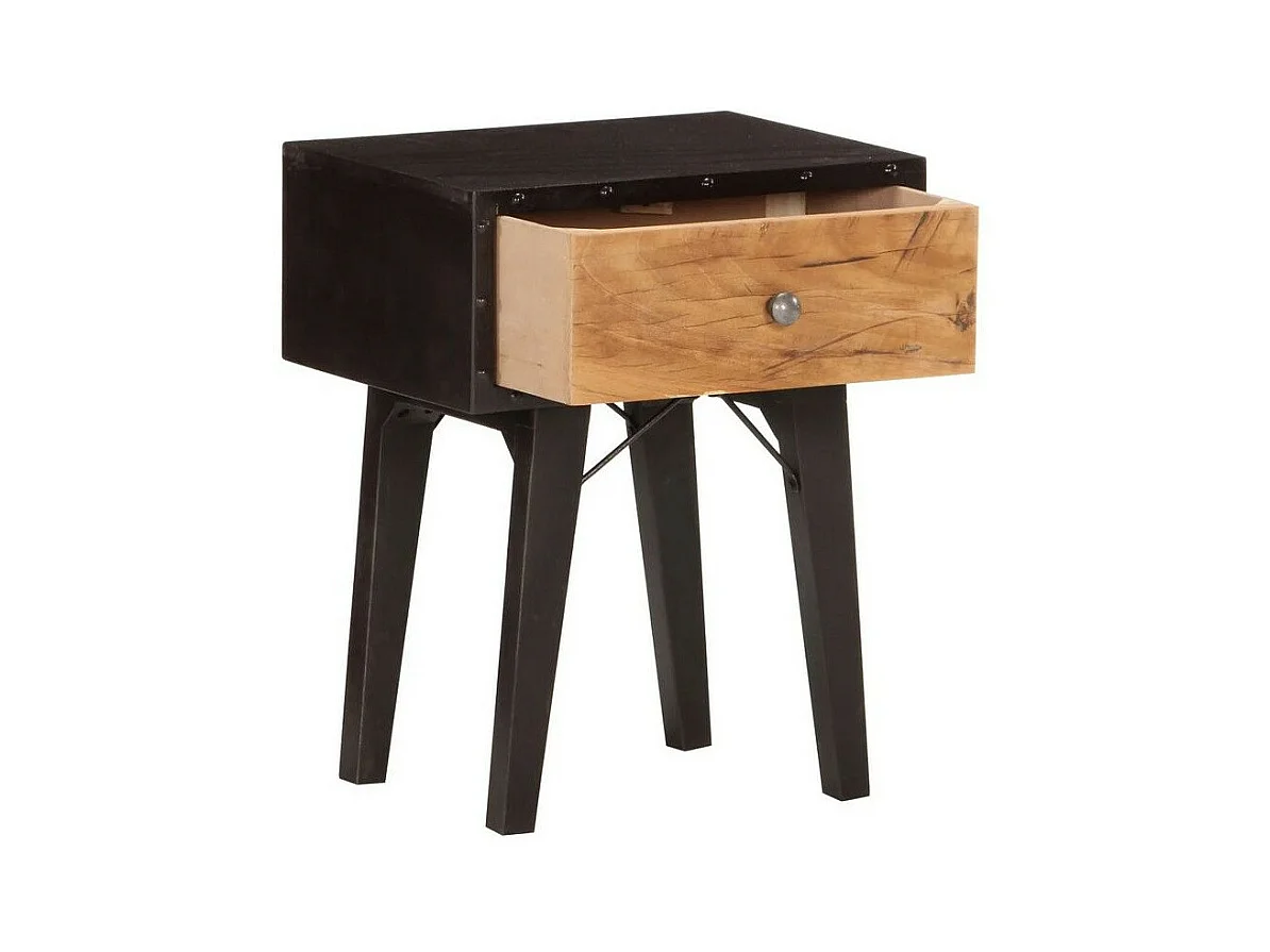 Table de chevet bois de récupération foncé noir Figg