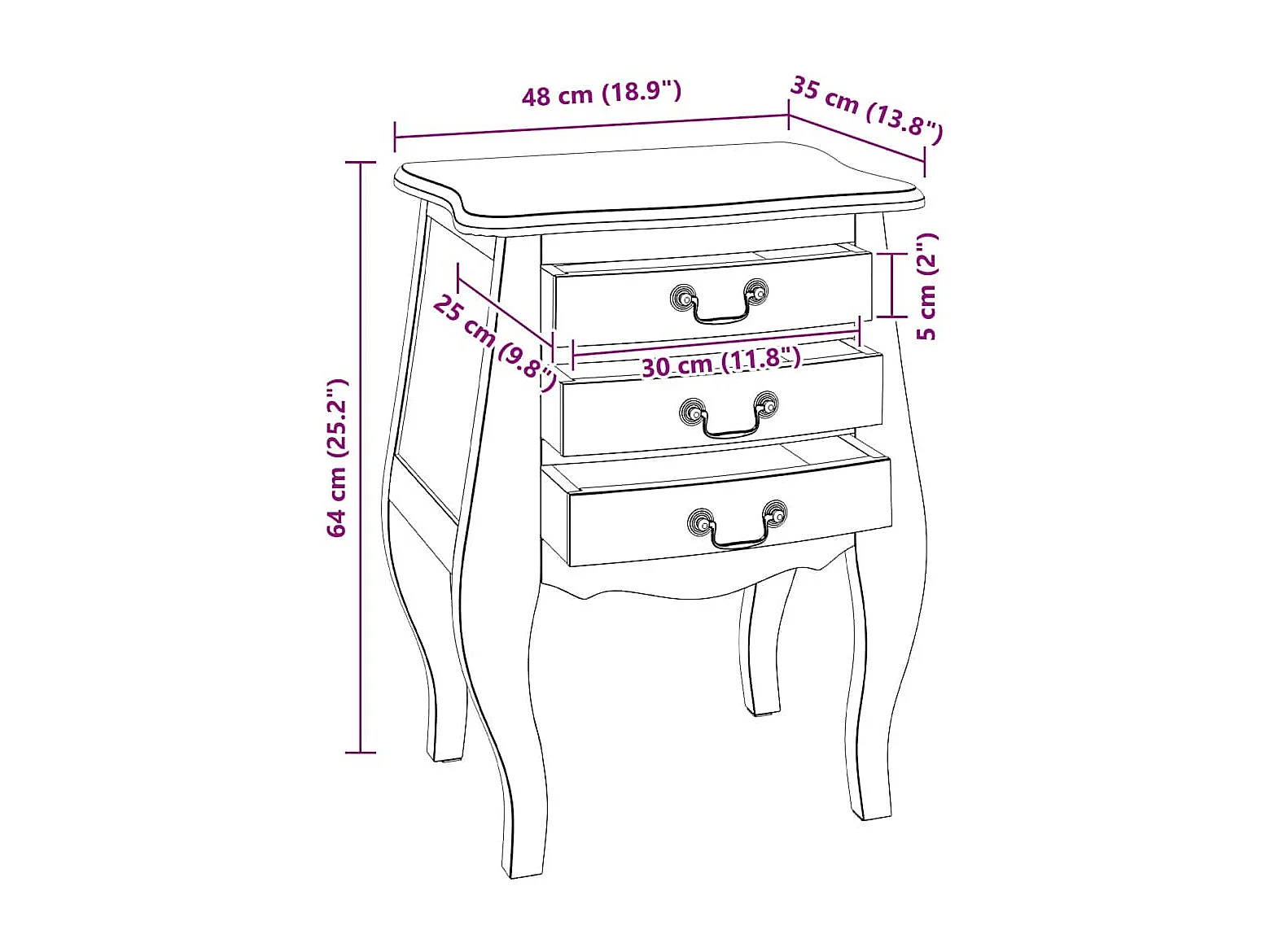 Table de chevet bois d'acajou massif 48x35x64 cm