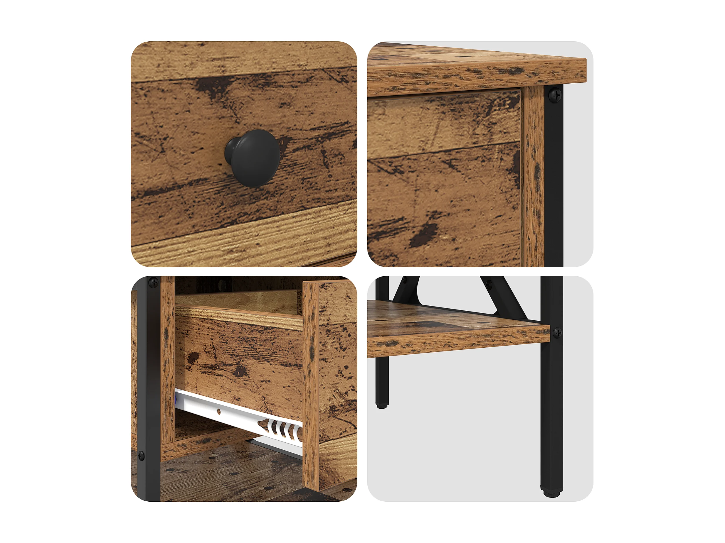 Table de chevet Bois vieilli 40x42x45 cm en bois d'ingénierie