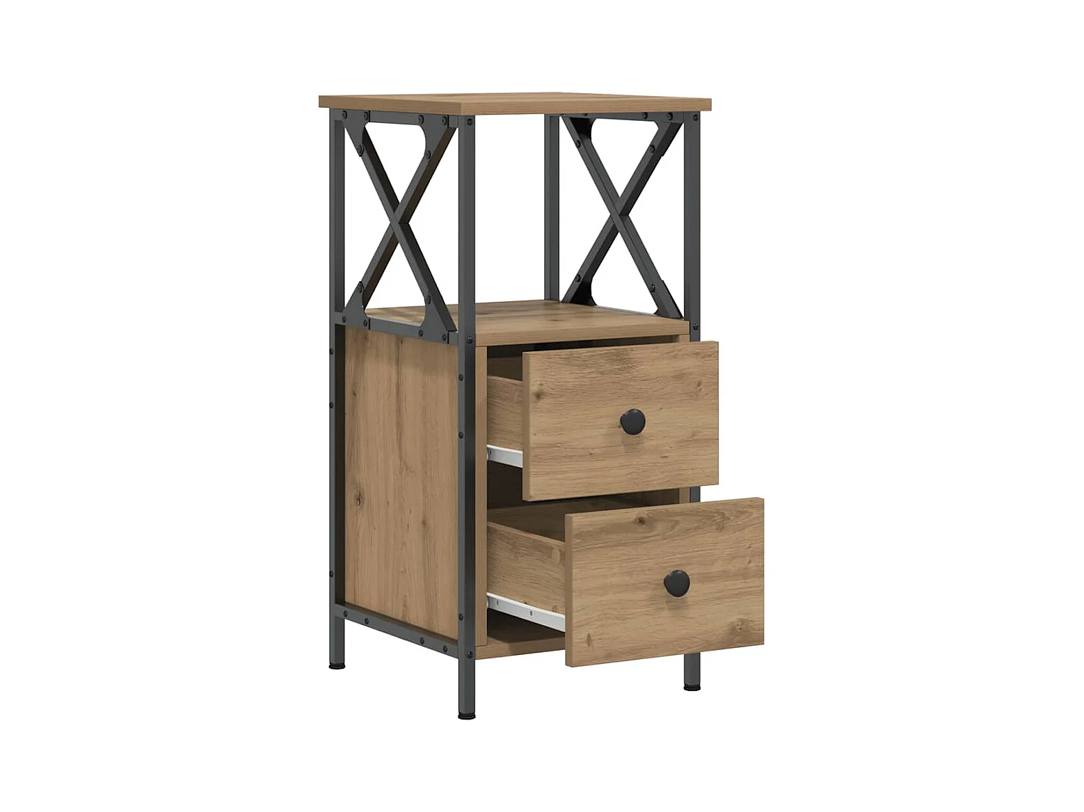 Table de chevet chêne artisanal 34x35,5x70 cm bois d'ingénierie