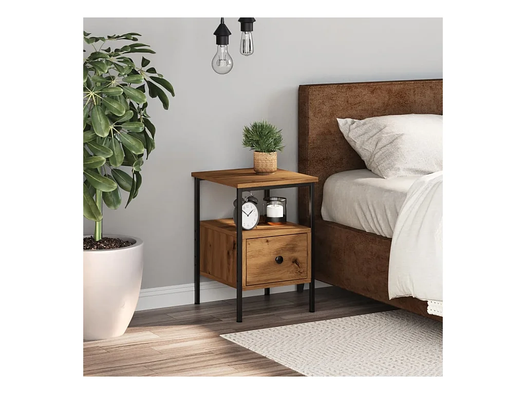 Table de chevet chêne artisanal 34x35,5x50 cm bois d'ingénierie