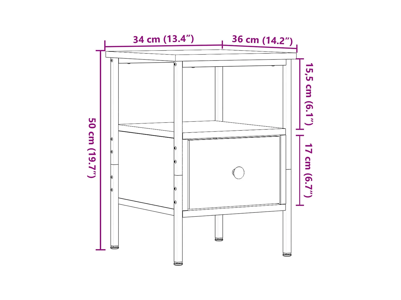 Table de chevet métal