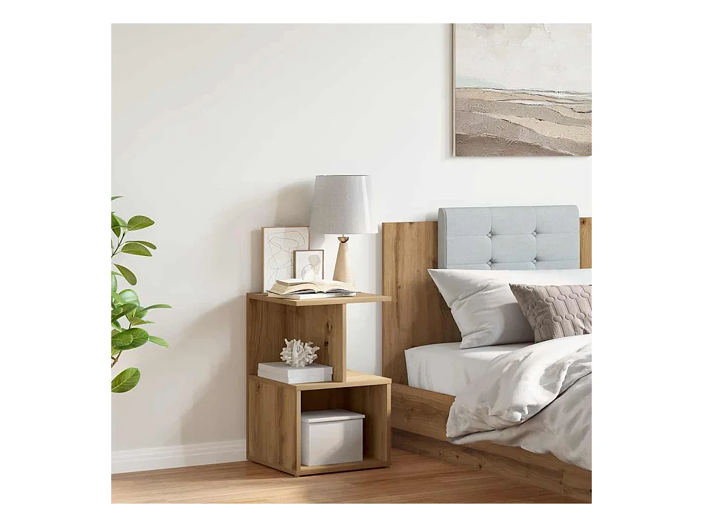 Table de chevet chêne artisanal 35x35x55 cm bois d'ingénierie