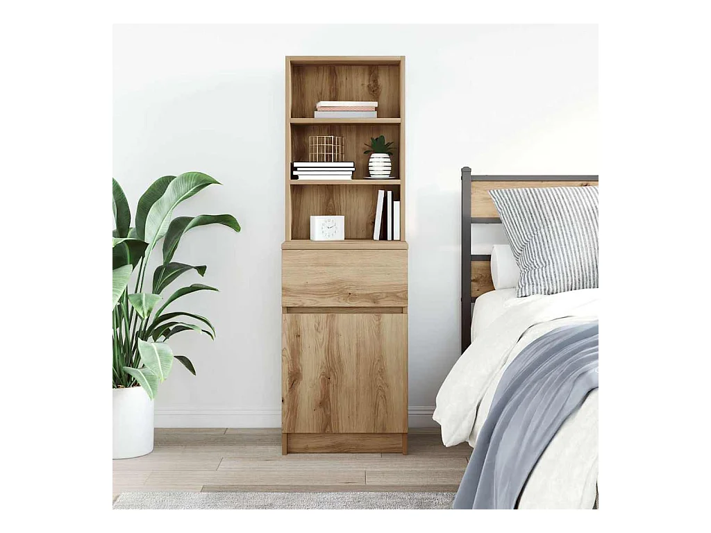 Table de chevet chêne artisanal 39x35x125 cm bois d'ingénierie