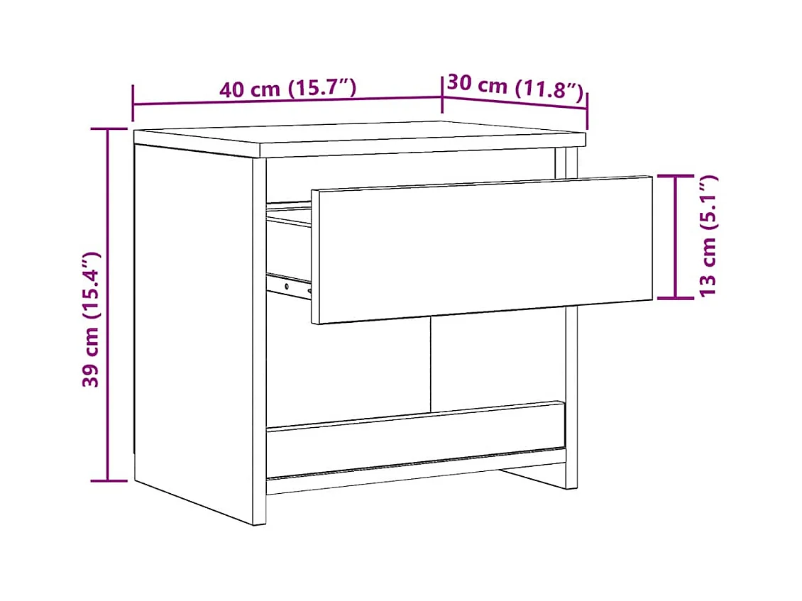 Table de chevet chêne artisanal 40x30x39 cm bois d'ingénierie