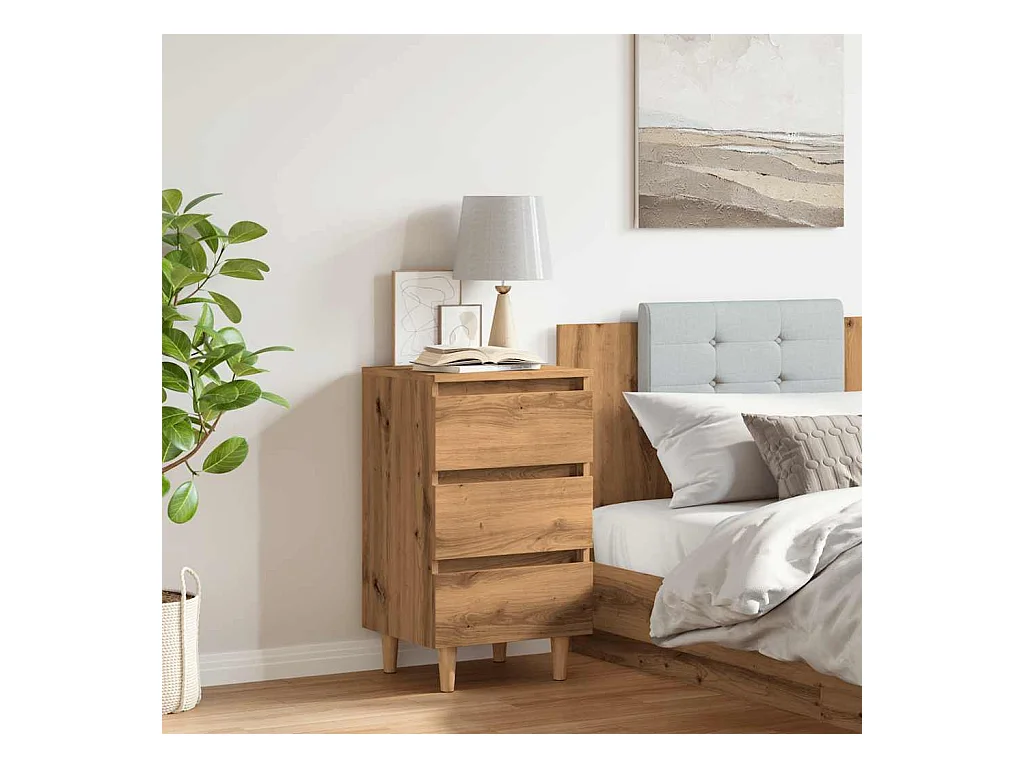 Table de chevet chêne artisanal 40x35x62,5 cm bois d'ingénierie