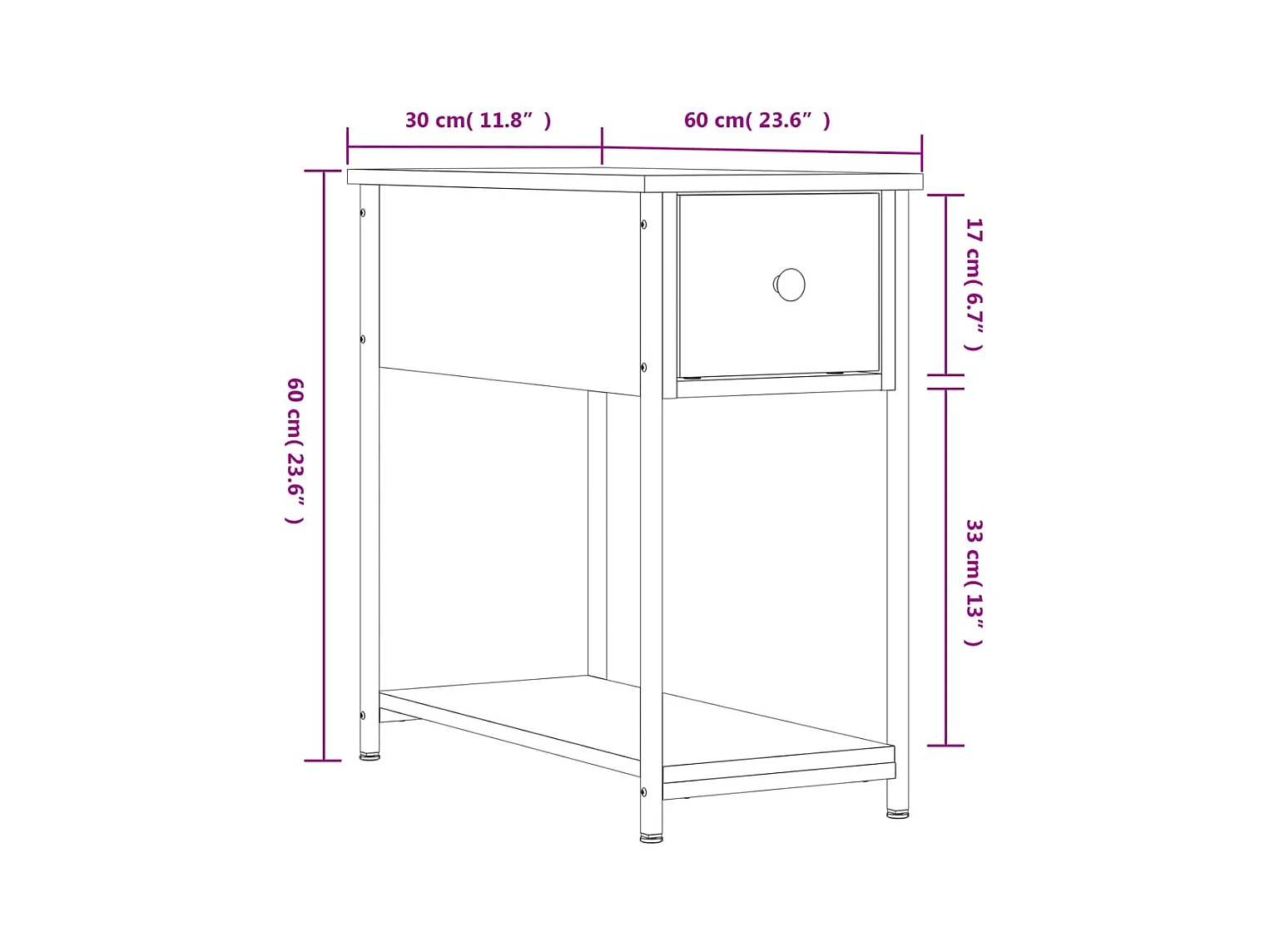 Table de chevet chêne fumé 30x60x60 cm bois d'ingénierie