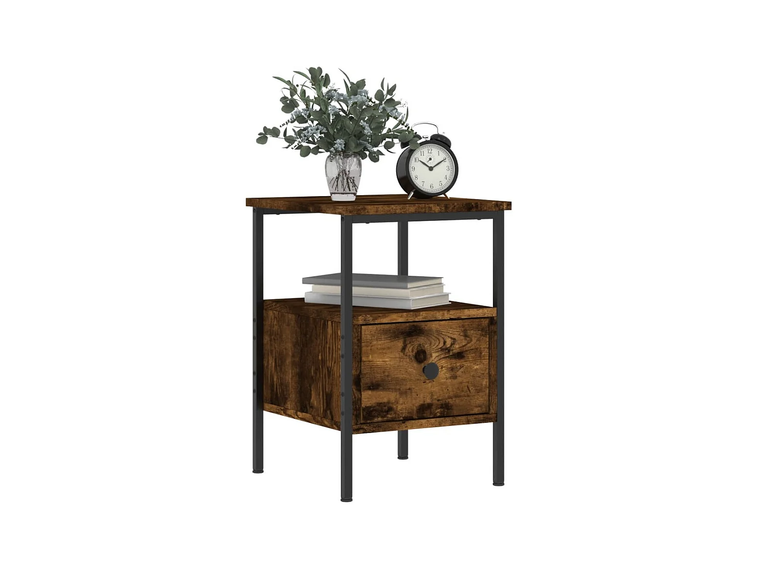 Table de chevet chêne fumé 34x36x50 cm bois d'ingénierie QPD17521
