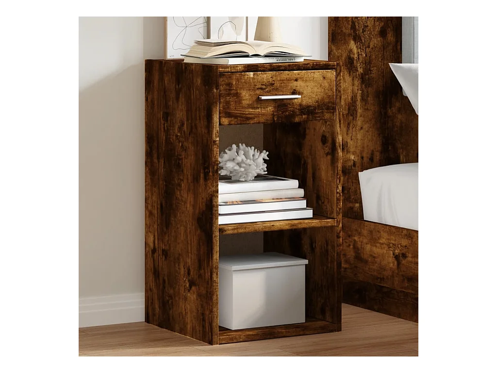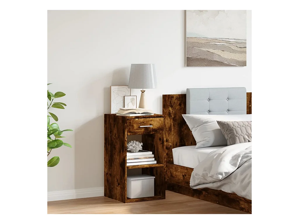 Table de chevet avec tiroir chêne fumé 35x34x66,5 cm