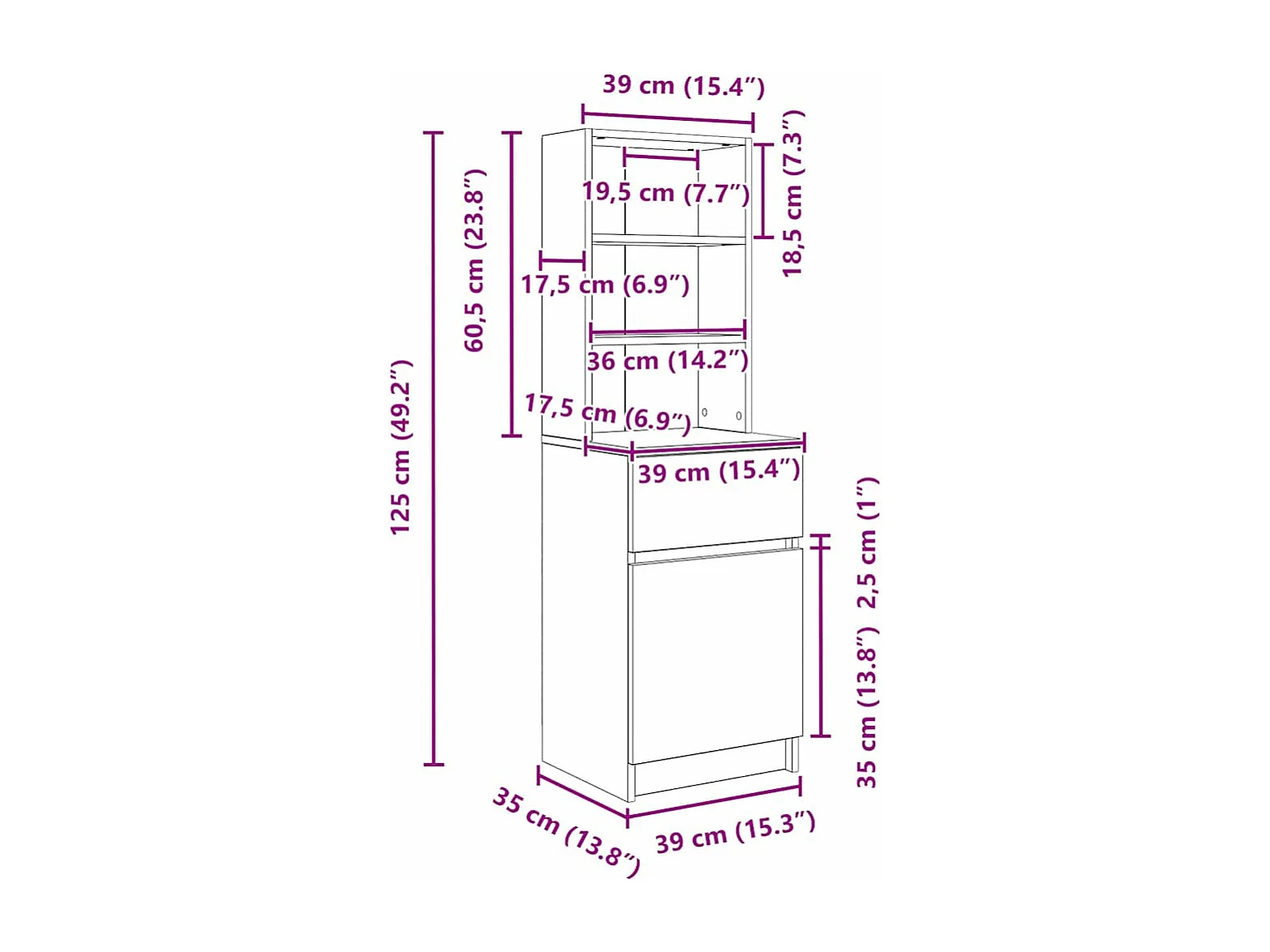 Table de chevet chêne fumé 39x35x125 cm bois d'ingénierie