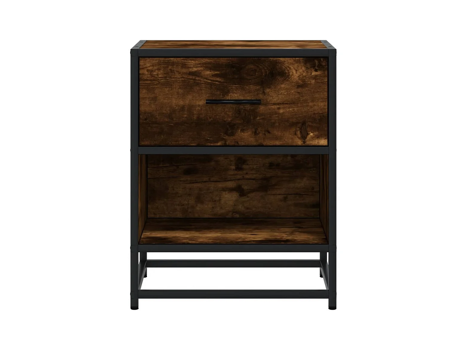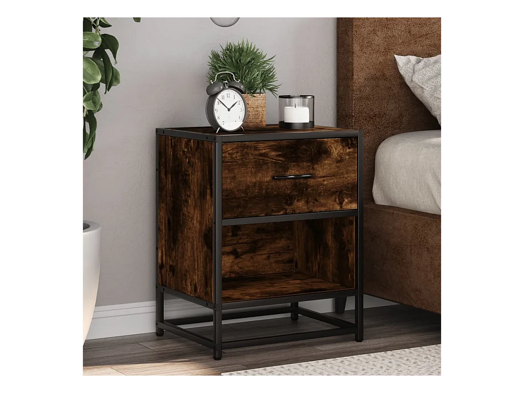 Table de chevet chêne fumé 60x31x60 cm bois ingénierie et métal