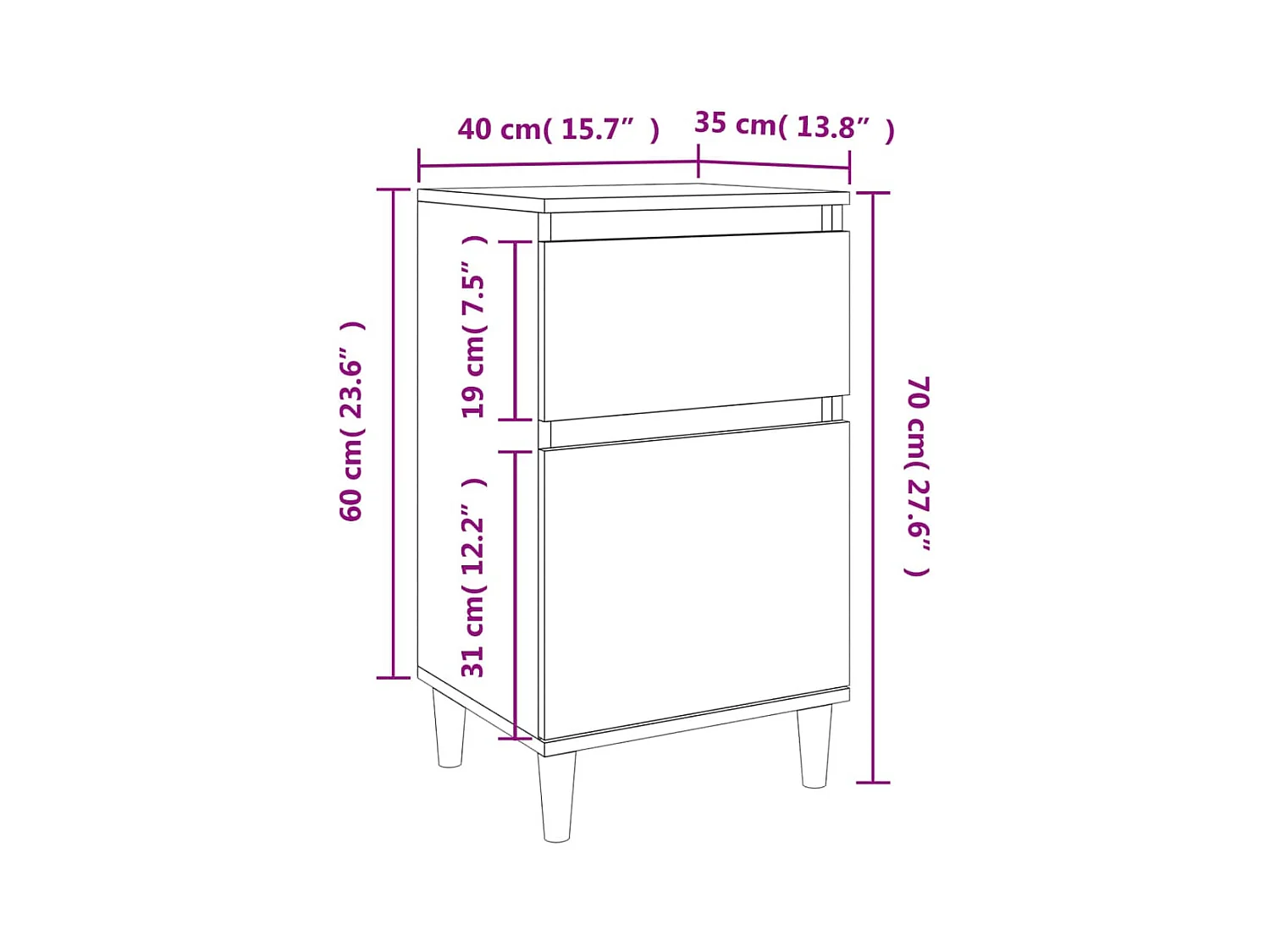 Table de chevet chêne marron 40x35x70 cm