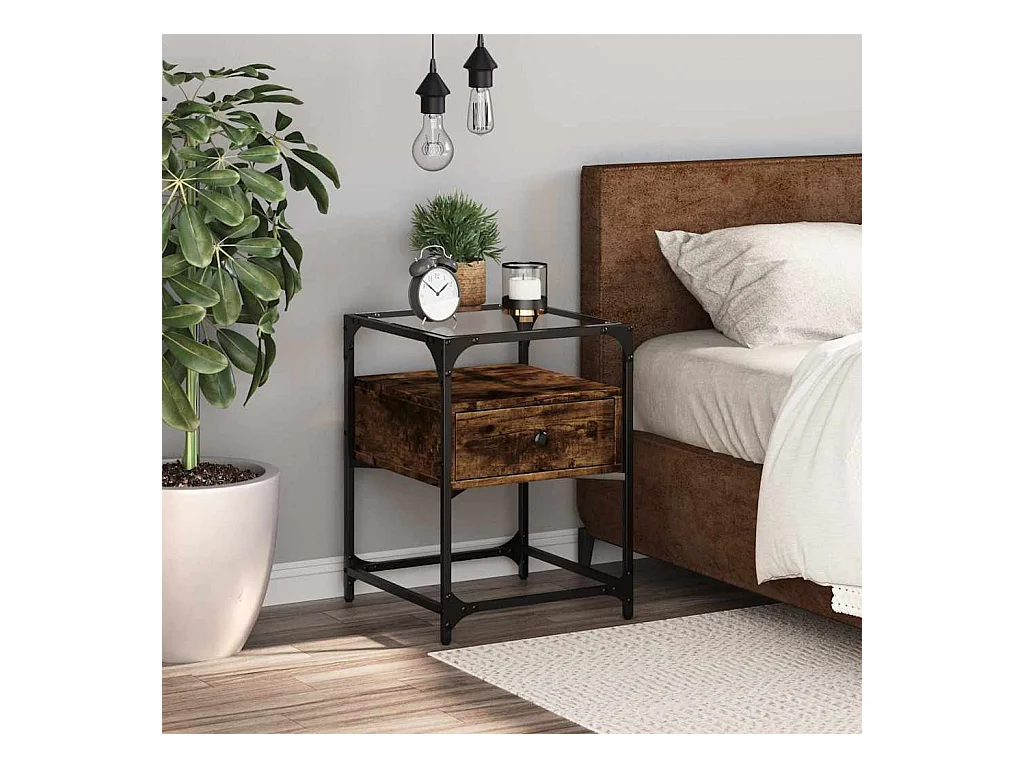 Table de chevet chêne fumé 40x40x55 cm bois d'ingénierie