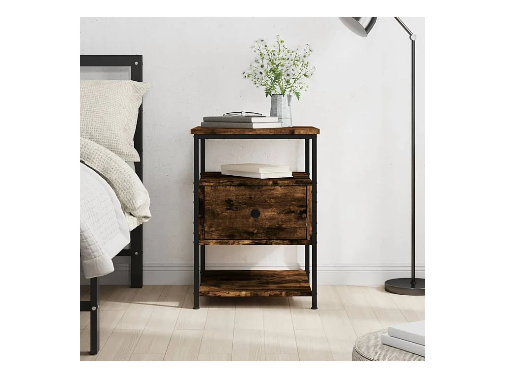 Table de chevet chêne fumé 40x42x56 cm bois d'ingénierie