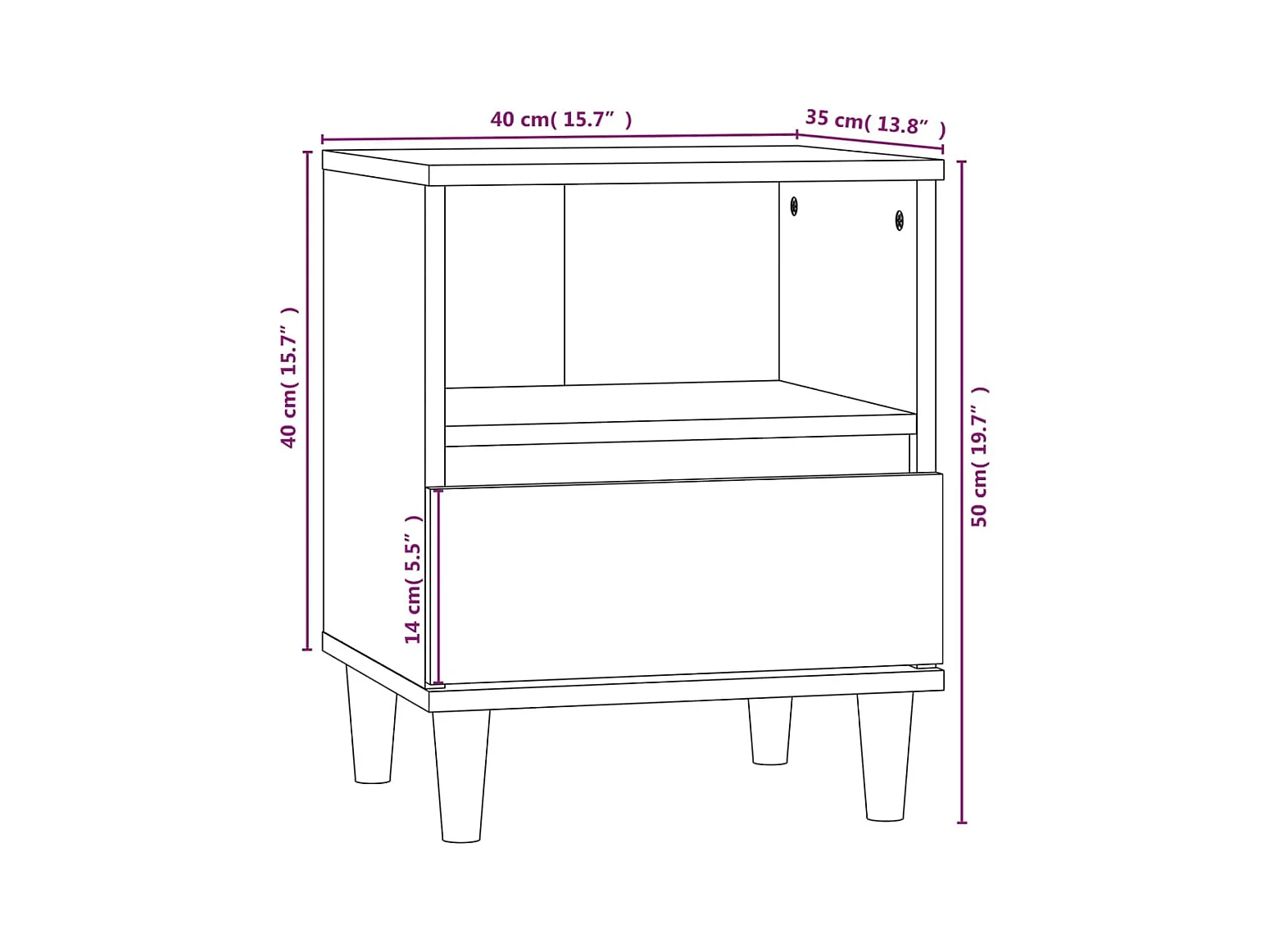 Table de chevet avec pieds en bois Chêne fumé 40x35x50 cm