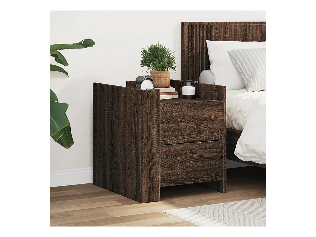 Table de chevet chêne fumé 45x50x50 cm bois d'ingénierie