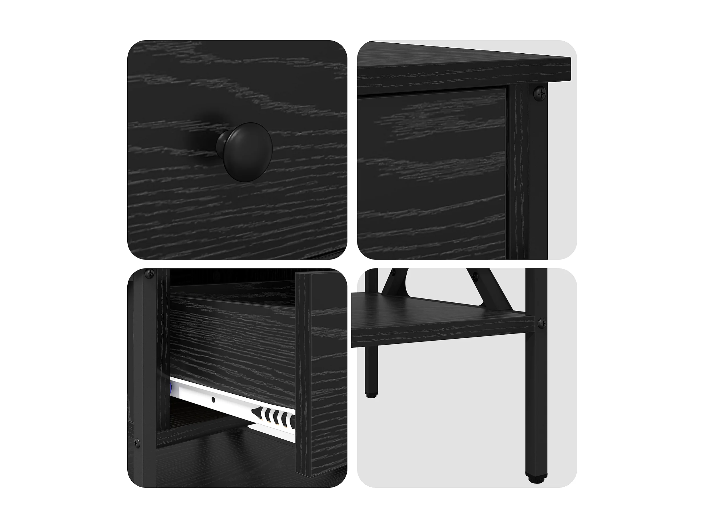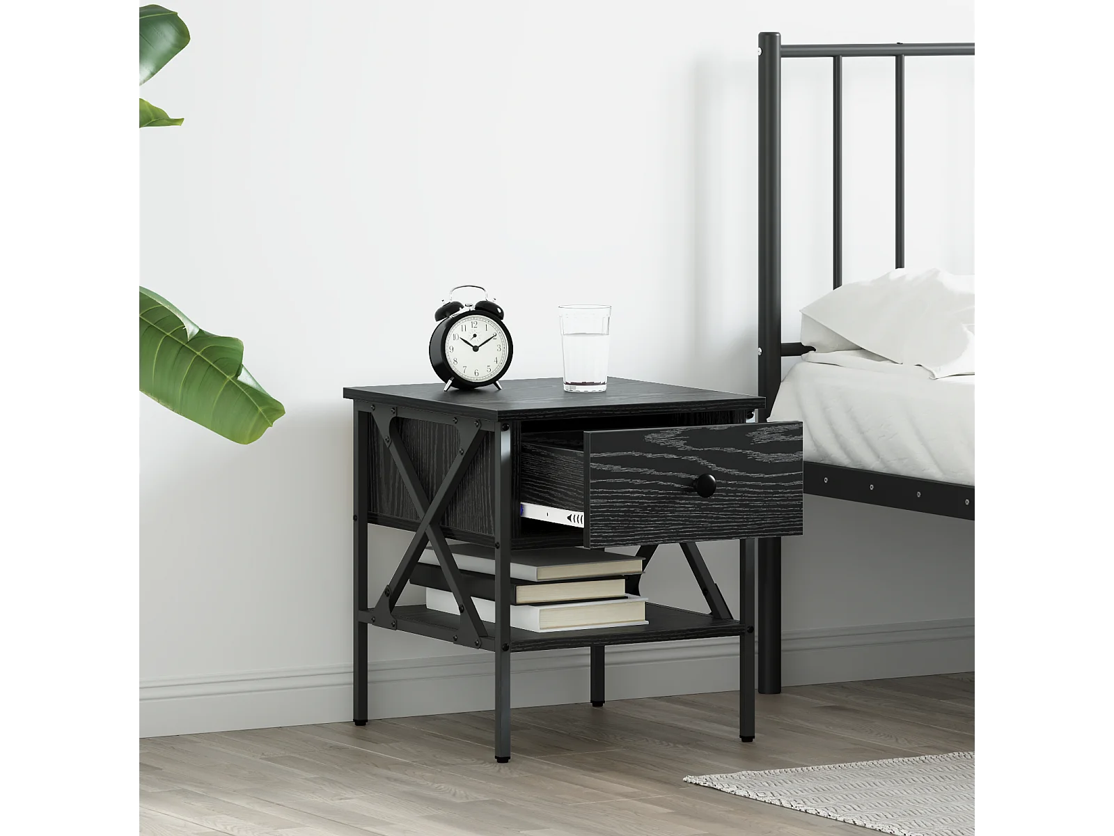 Table de chevet noir 40x31x50 cm bois d'ingénierie et métal