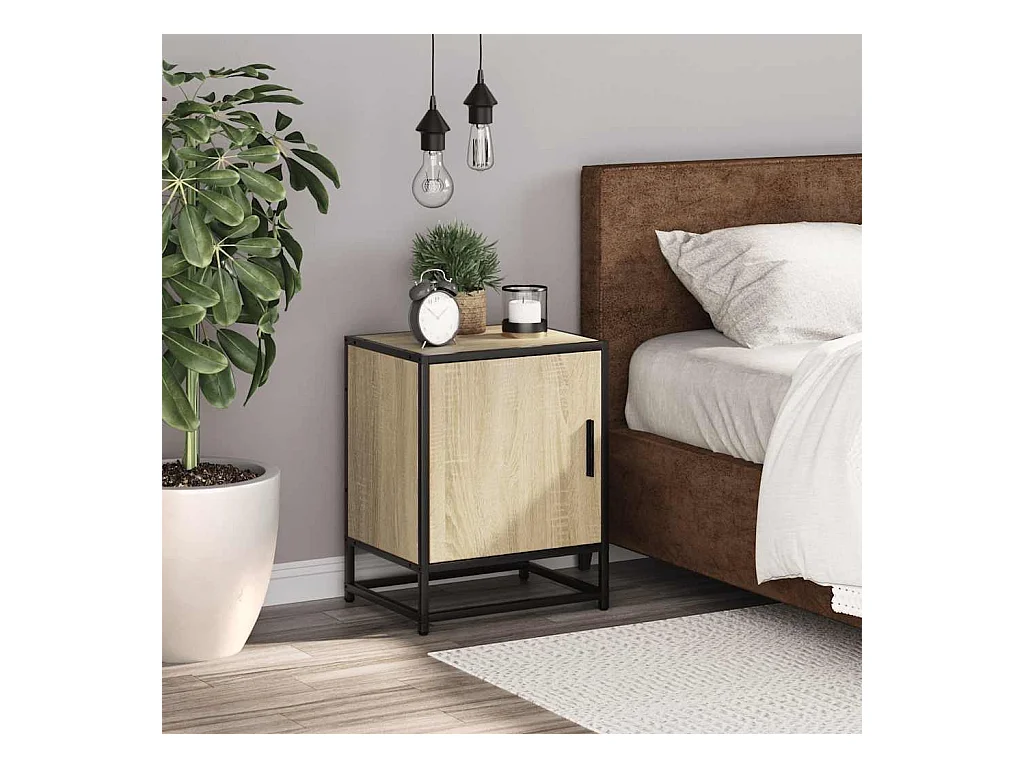 Table de chevet chêne sonoma 40x31x50cm bois d'ingénierie métal
