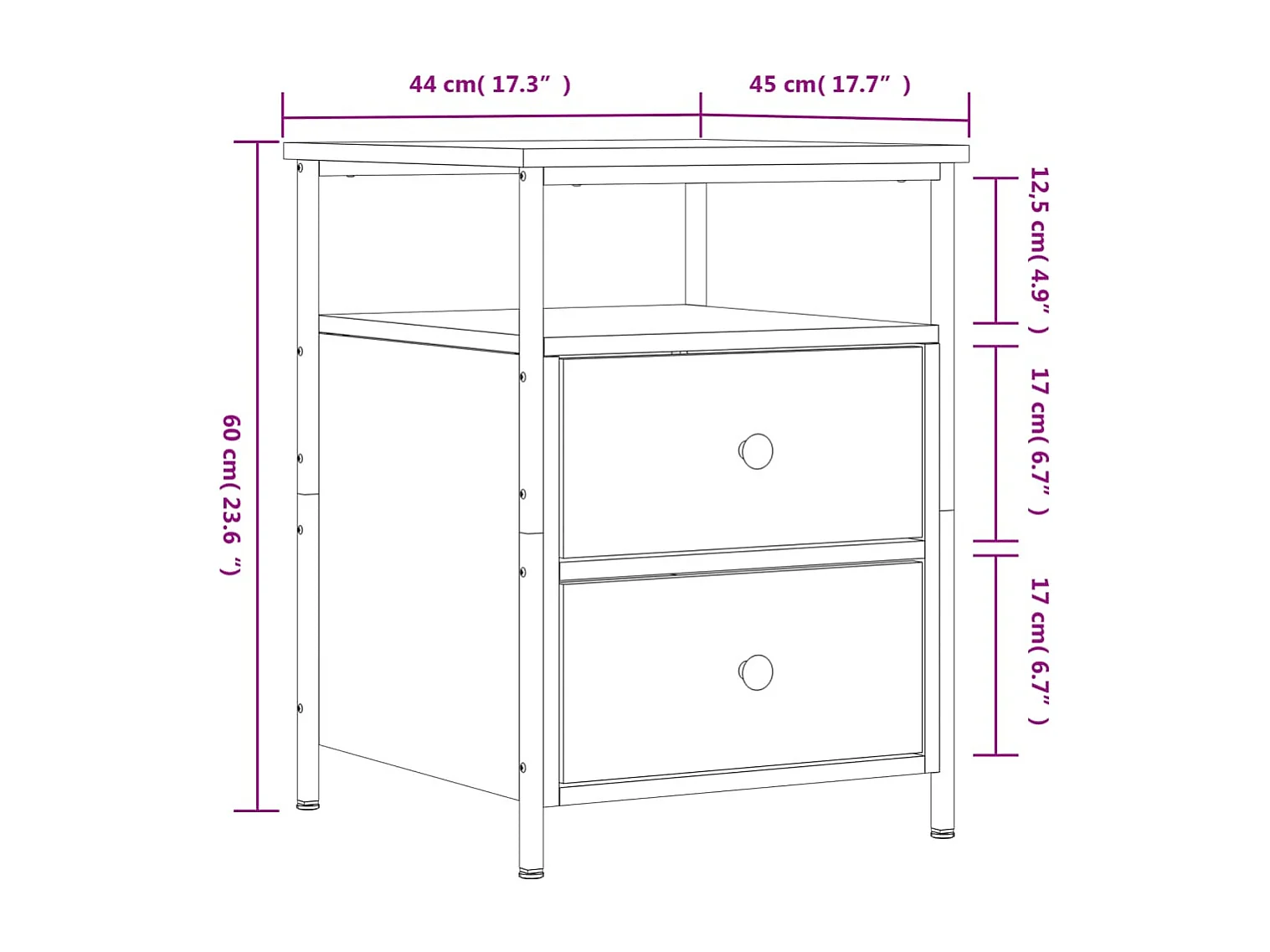 Table de chevet chêne sonoma 44x45x60 cm bois d'ingénierie