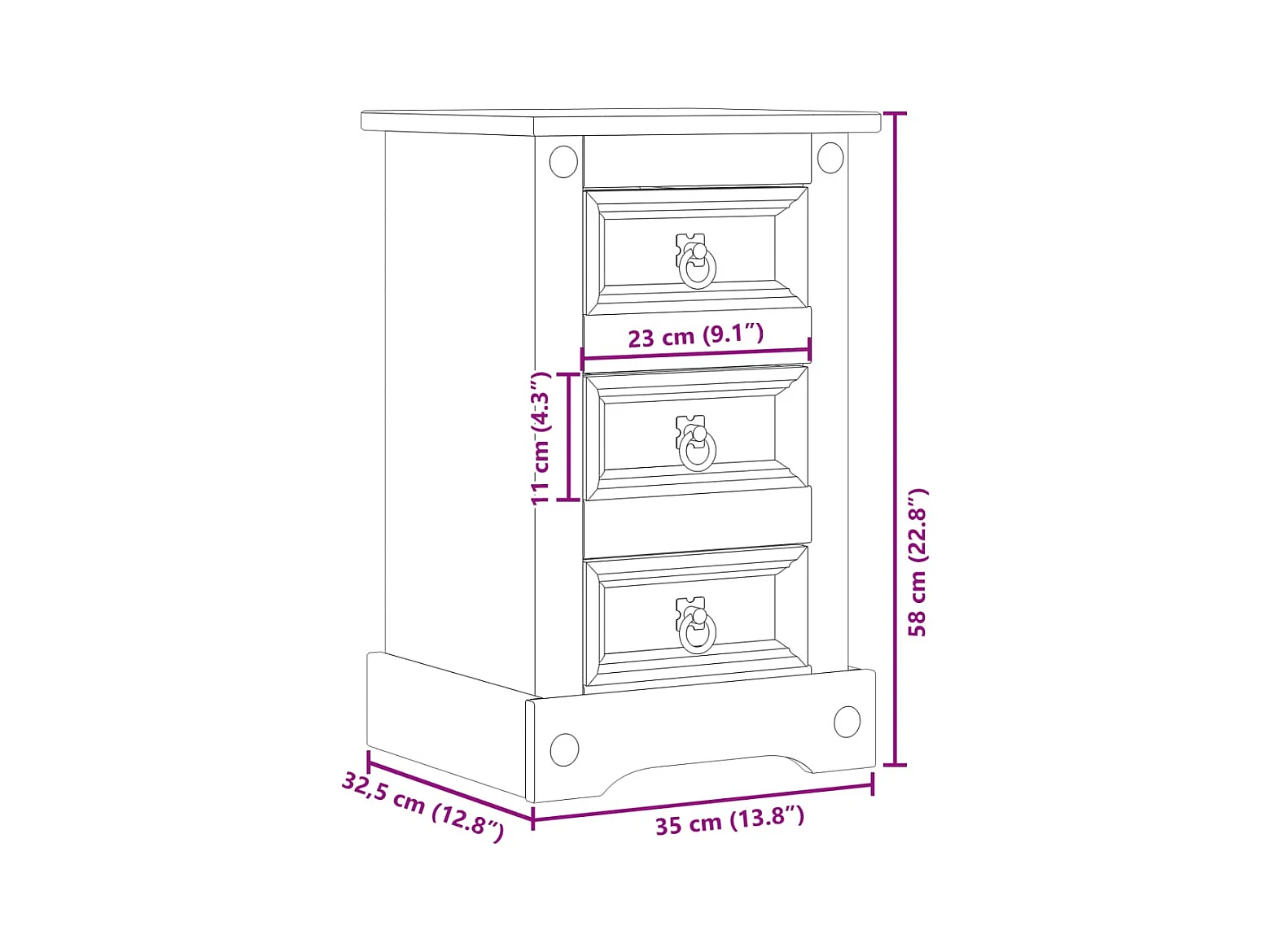Table de chevet Corona 35x32,5x58 cm bois de pin massif