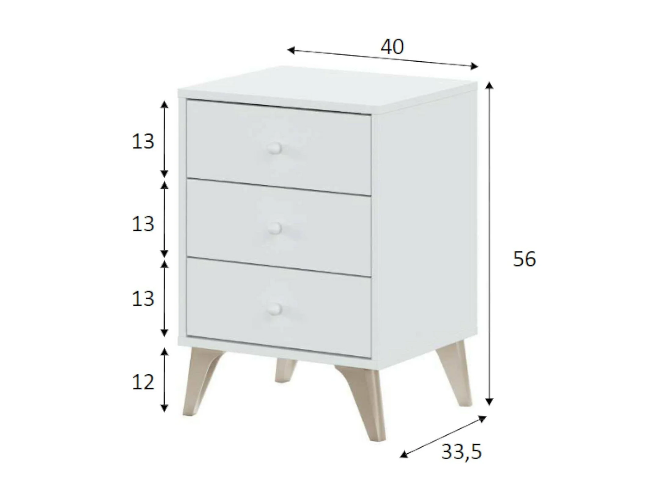 Table de chevet Dmayora, table de chevet 3 tiroirs, Table de chevet, 40x34h56 cm, Blanc et Chêne