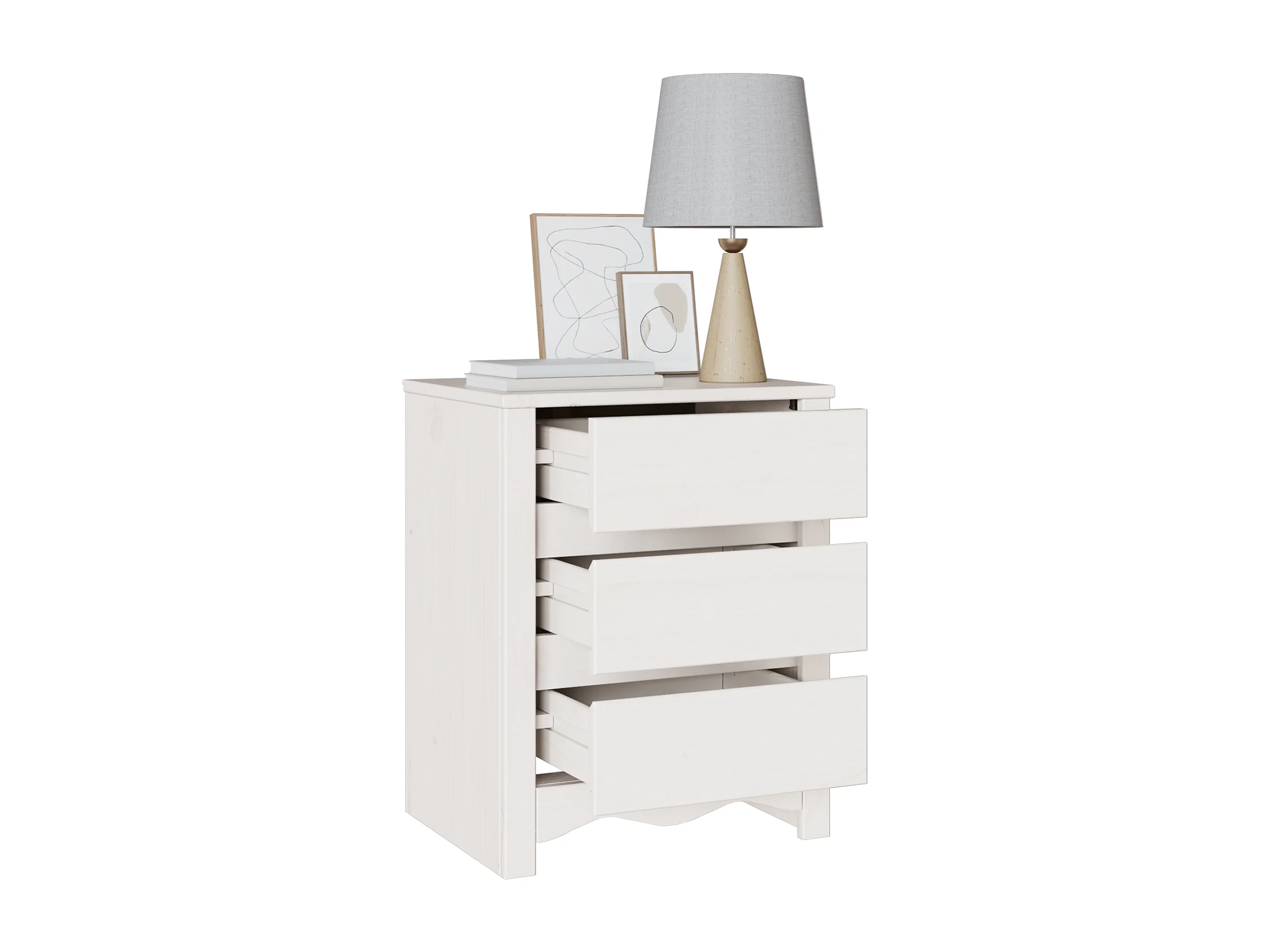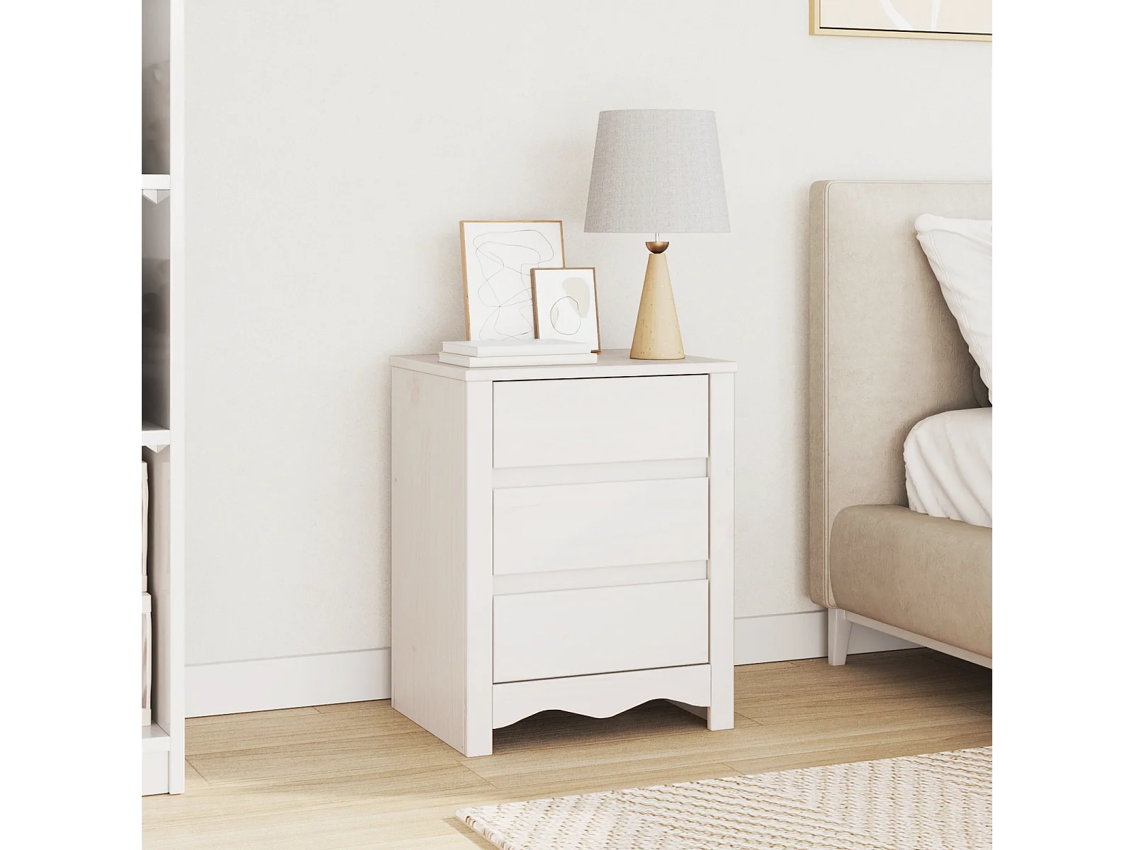 Table de chevet "DRAMMEN" Blanche 45x35x56 cm en bois massif de pin