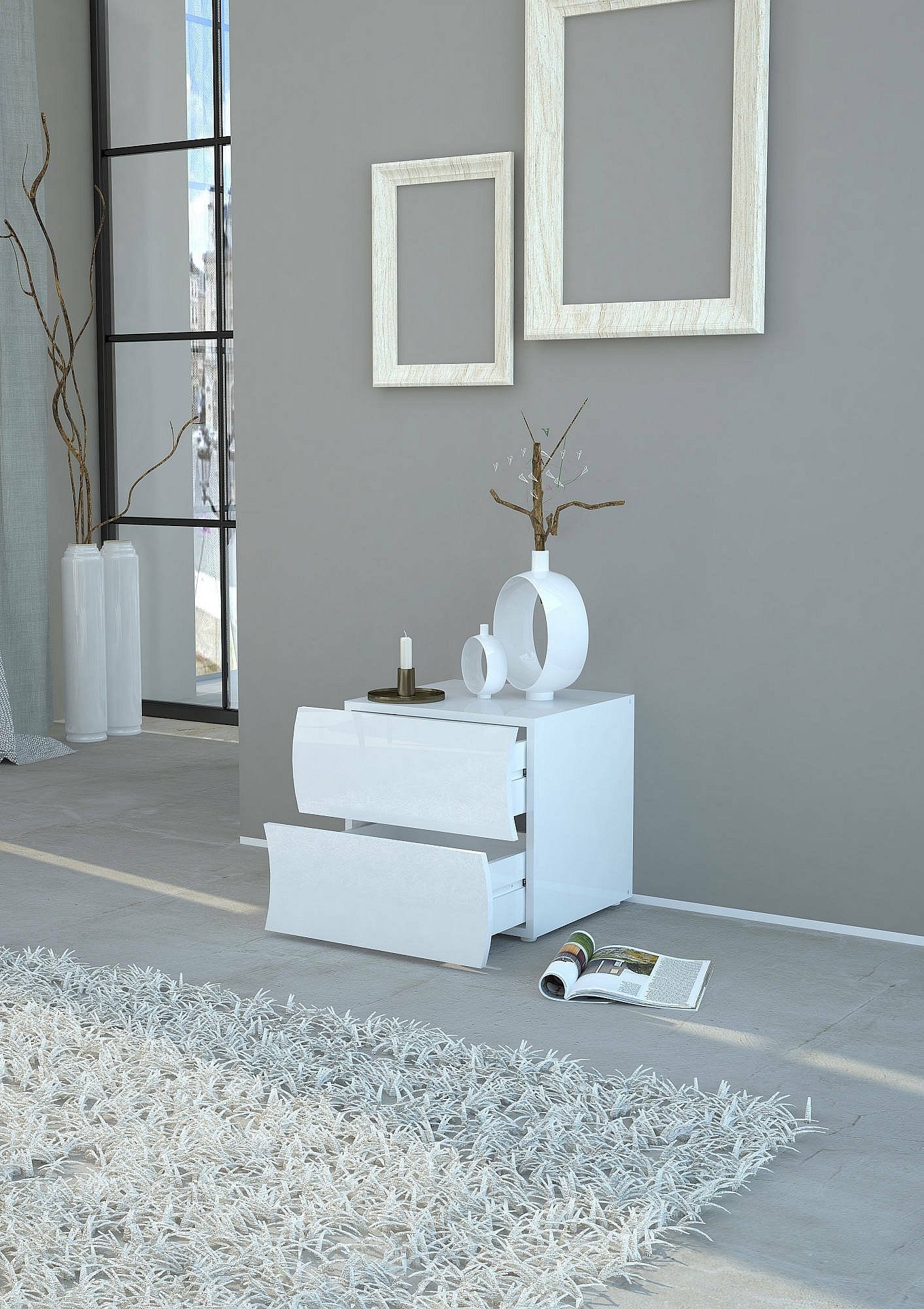 Table de chevet Edoardo, Table de nuit avec 2 tiroirs, Armoire de chambre, 100% Made in Italy, 50x40h41 cm, Blanc brillant