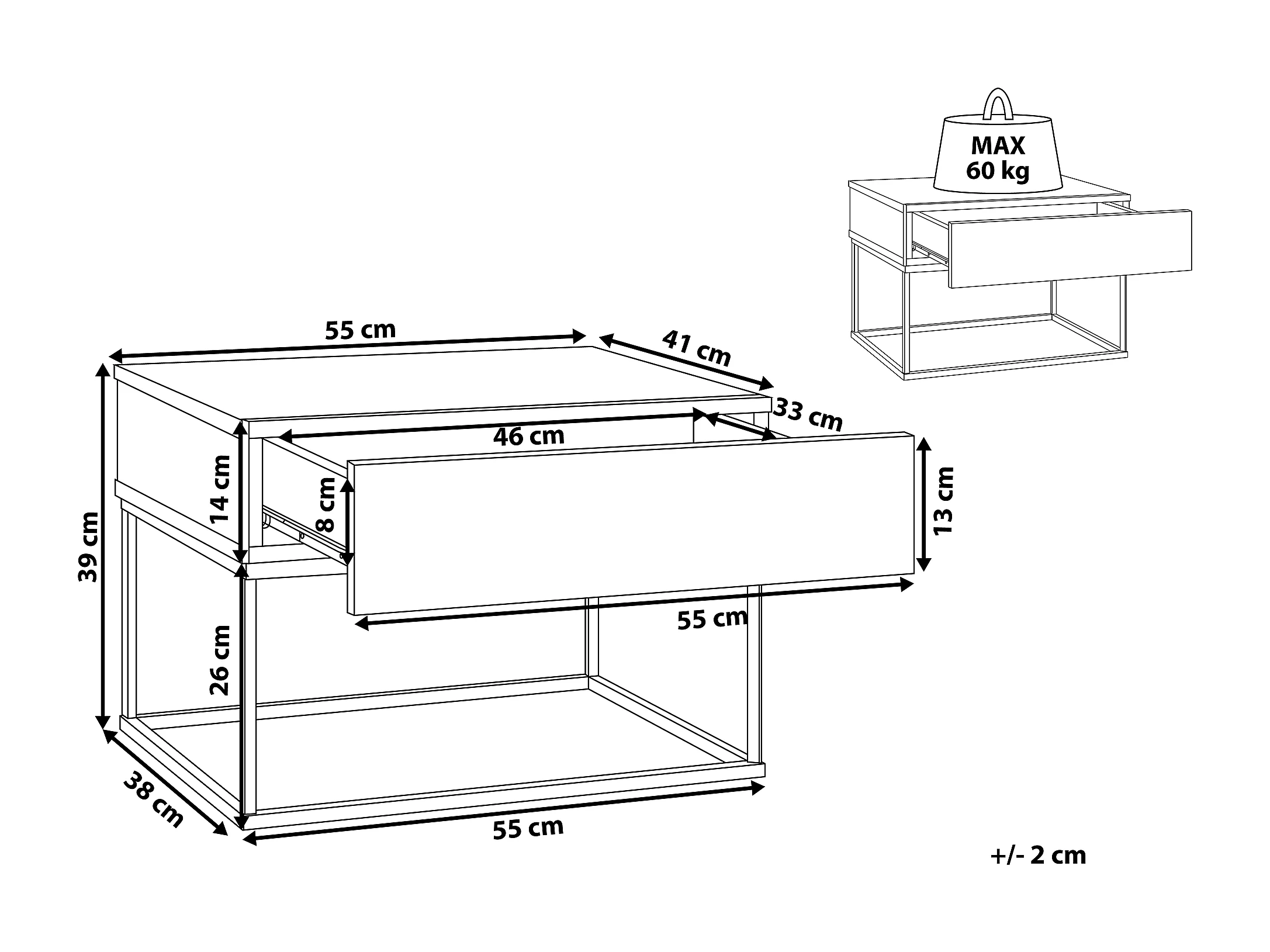 Table de chevet HERAKLES- anthracite, 55x33,2x41,4