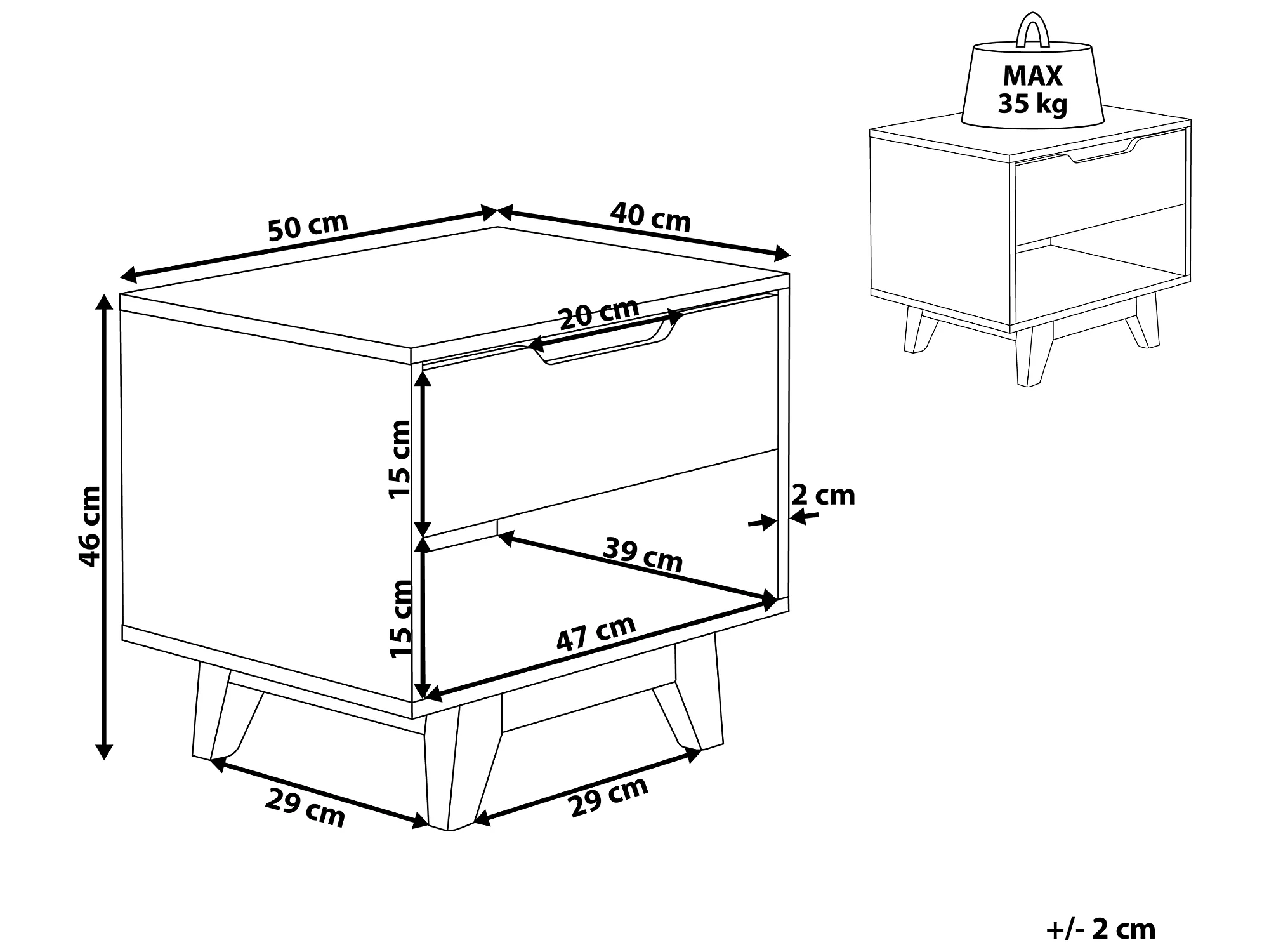 Chevet Daiki, Commode basse, Table de nuit, Étagère de chevet, 50x40 h50 cm, Noir