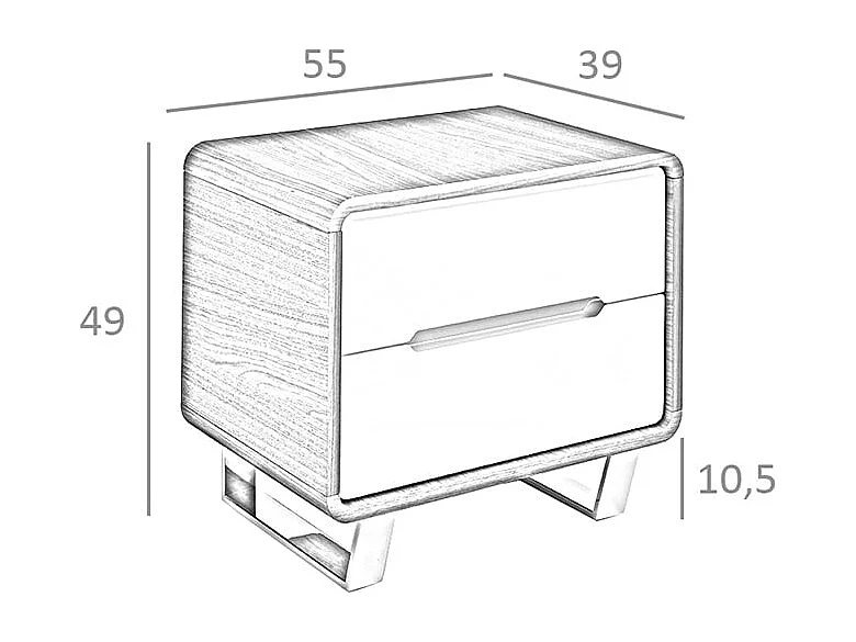 Table de chevet bois blanc, noyer et acier chromé 7107 ANGEL CERDA