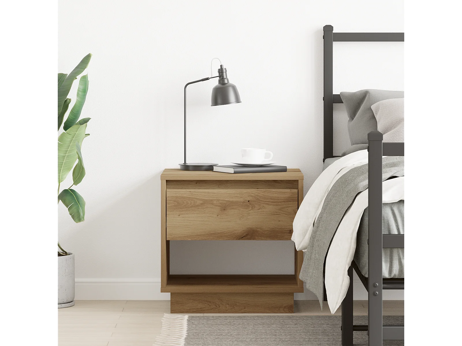 Table de chevet en chêne artisan 45x34x44,5 cm en bois d'ingénierie