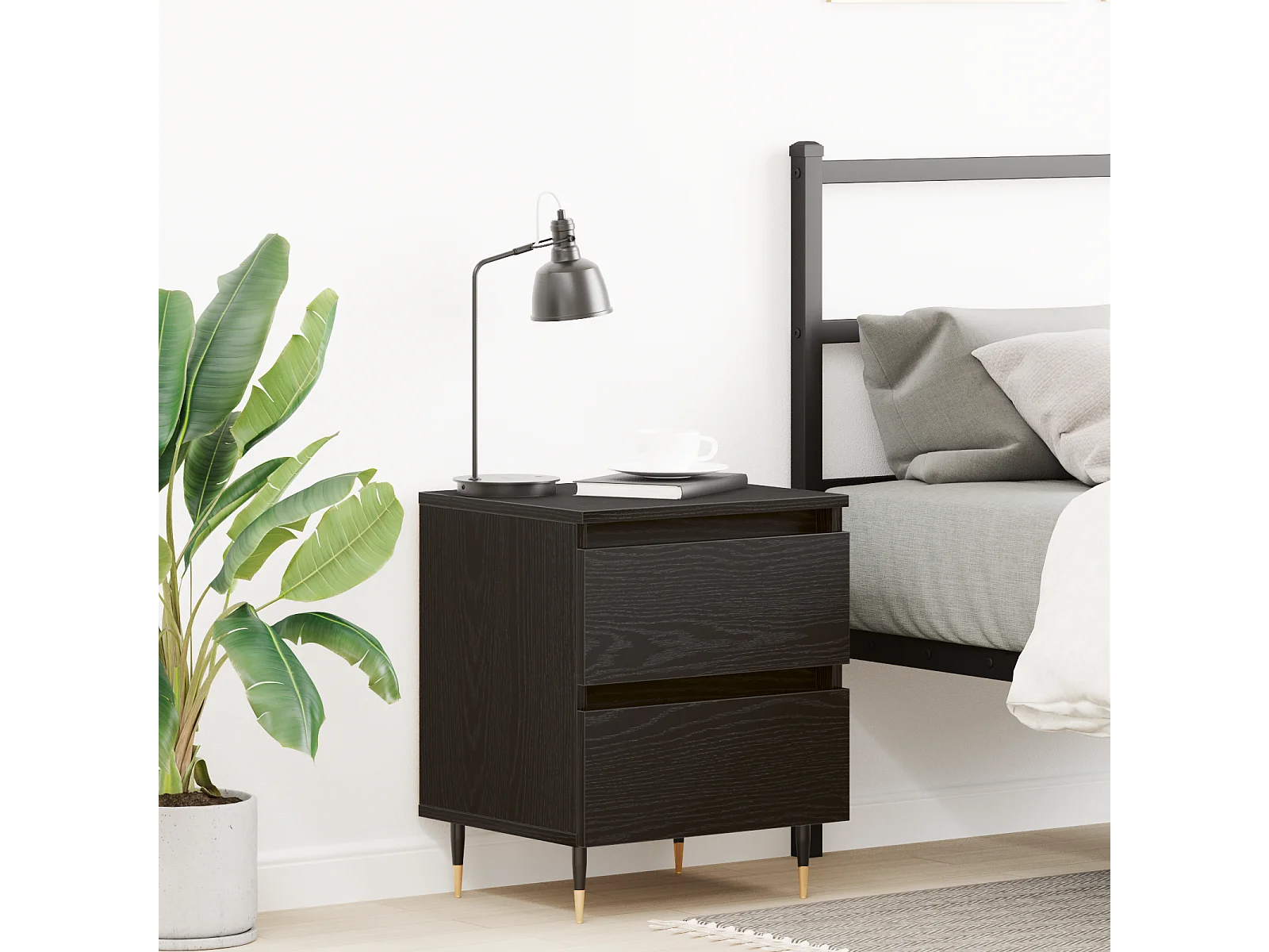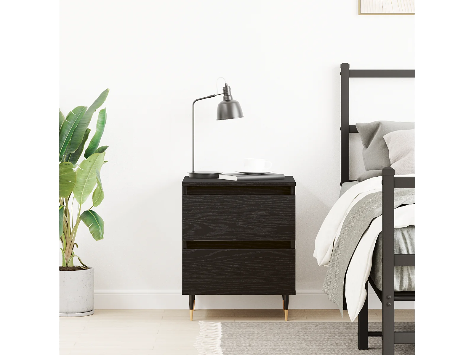 Table de chevet en chêne noir 40x35x50 cm en bois d'ingénierie