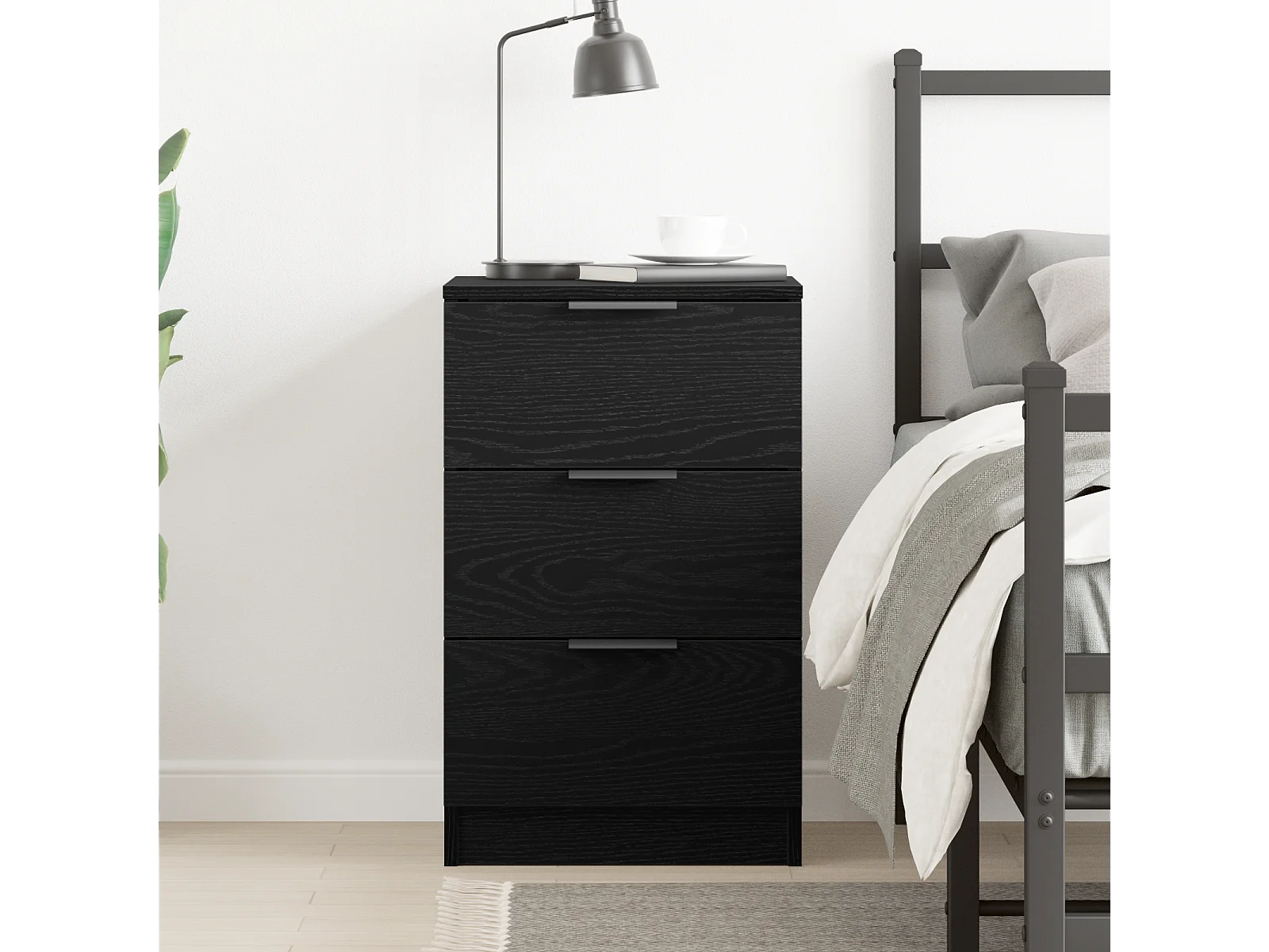Table de nuit Noir Chêne 40x30x39 cm en bois d'ingénierie