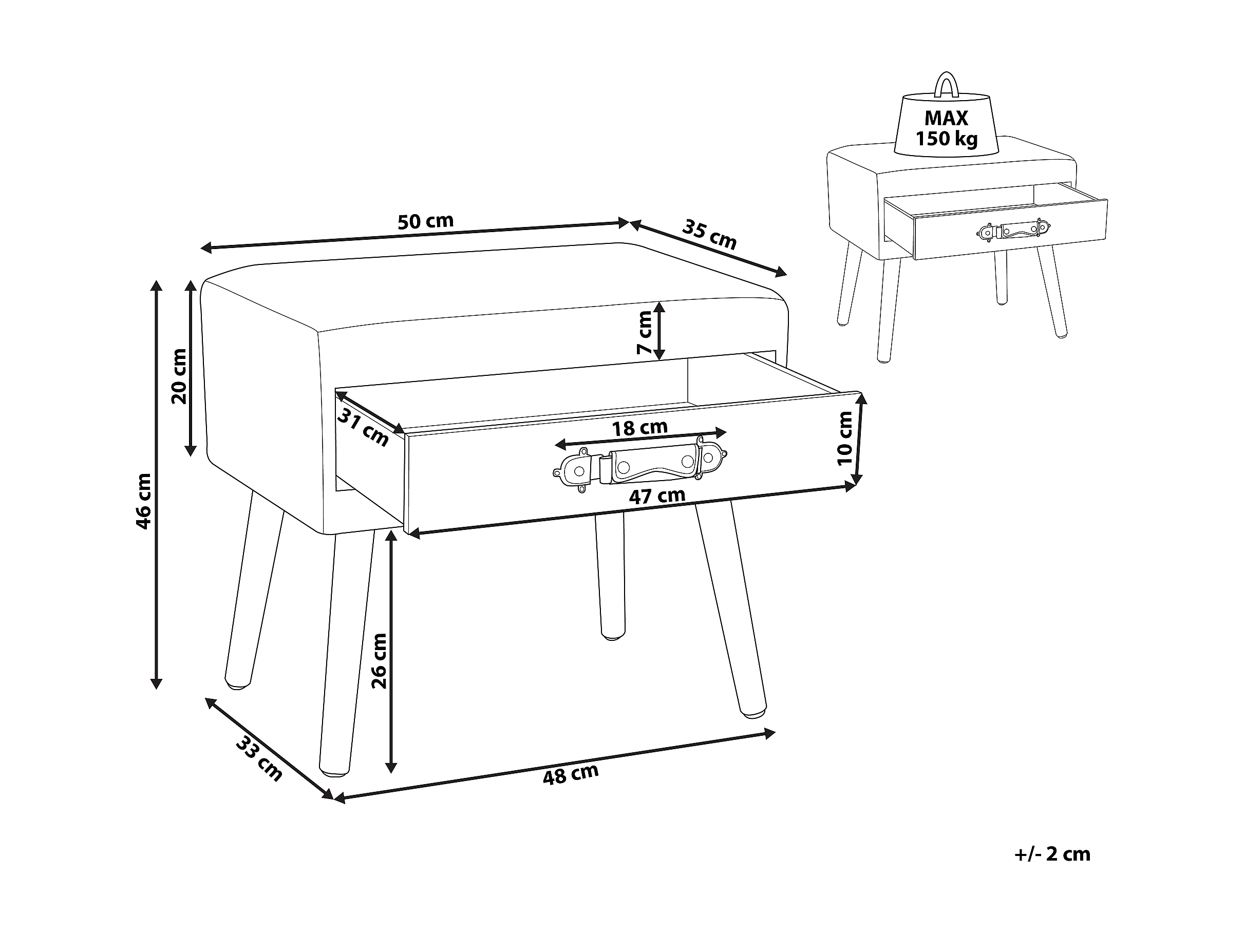 Table de nuit à 1 tiroir EUROSTAR Cuir PU Beige