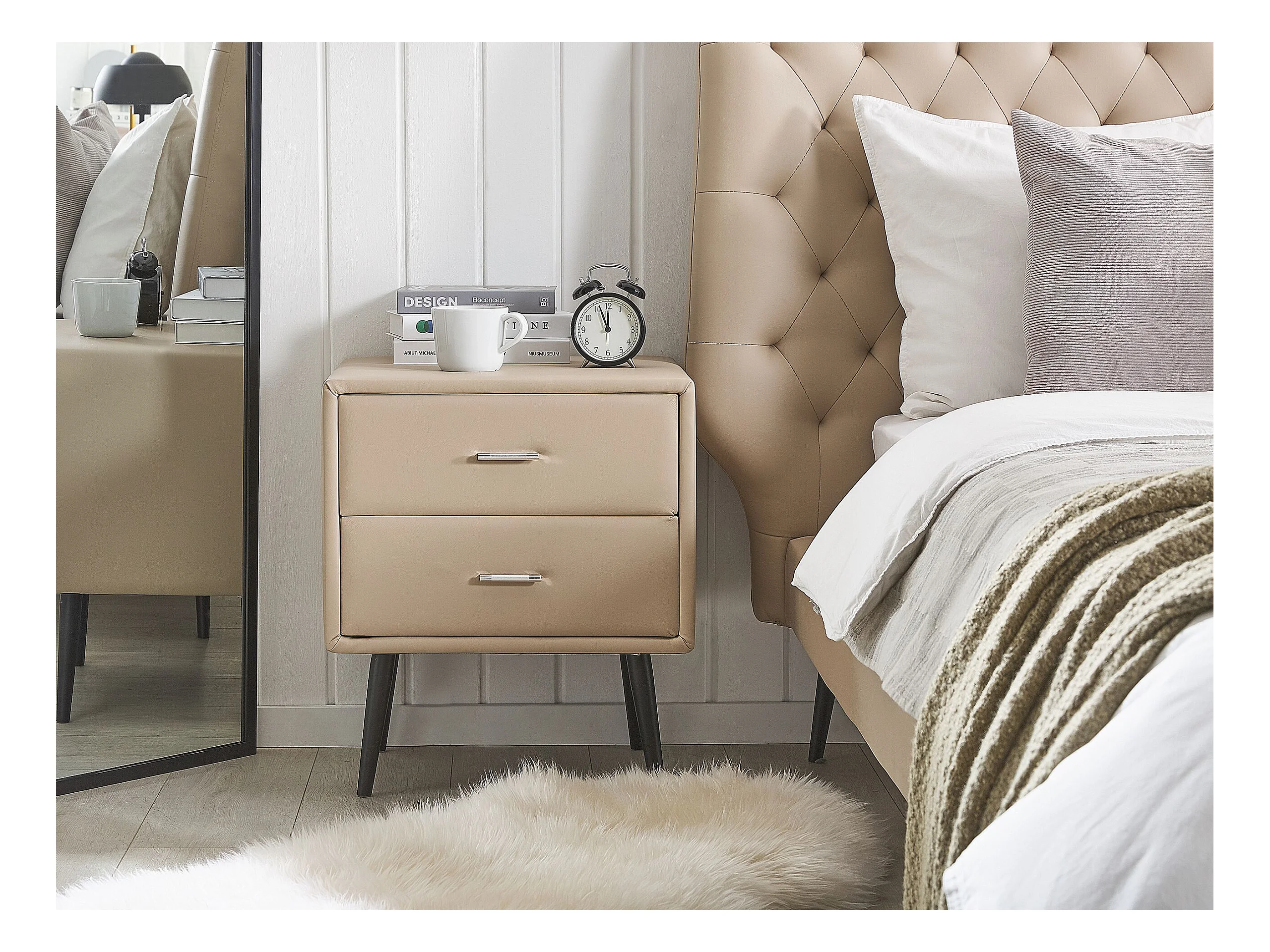 Table de nuit à 2 tiroirs ESSONNE Cuir PU Beige
