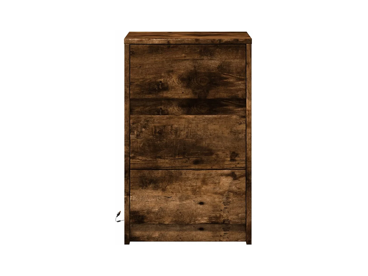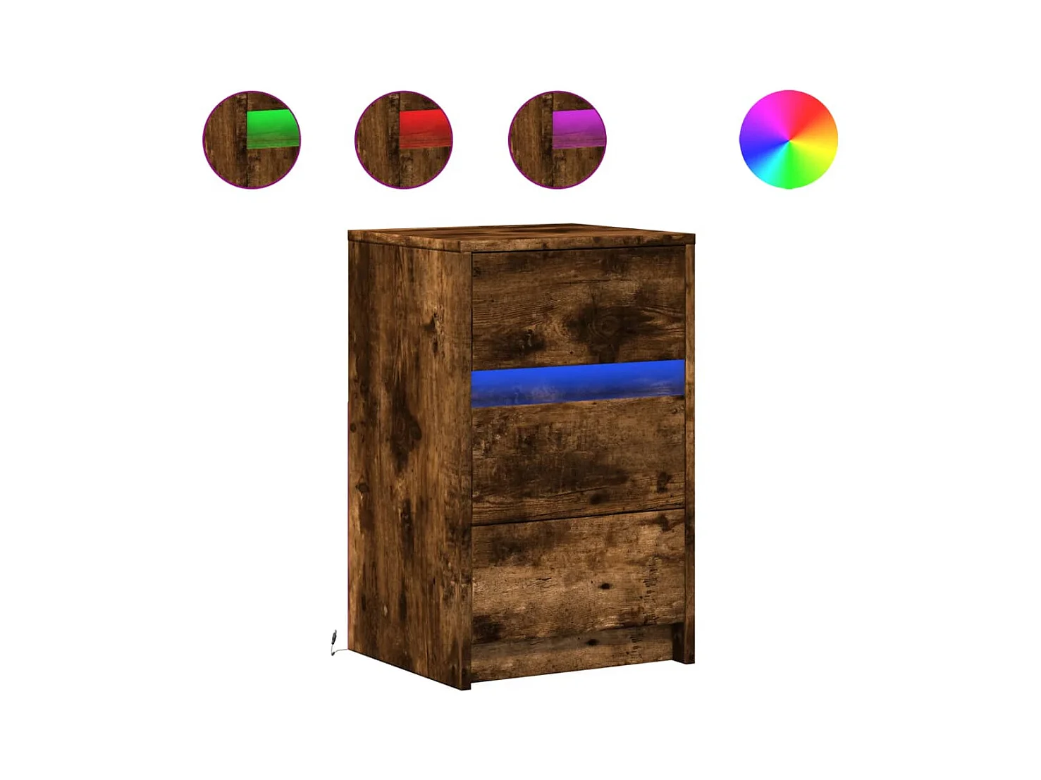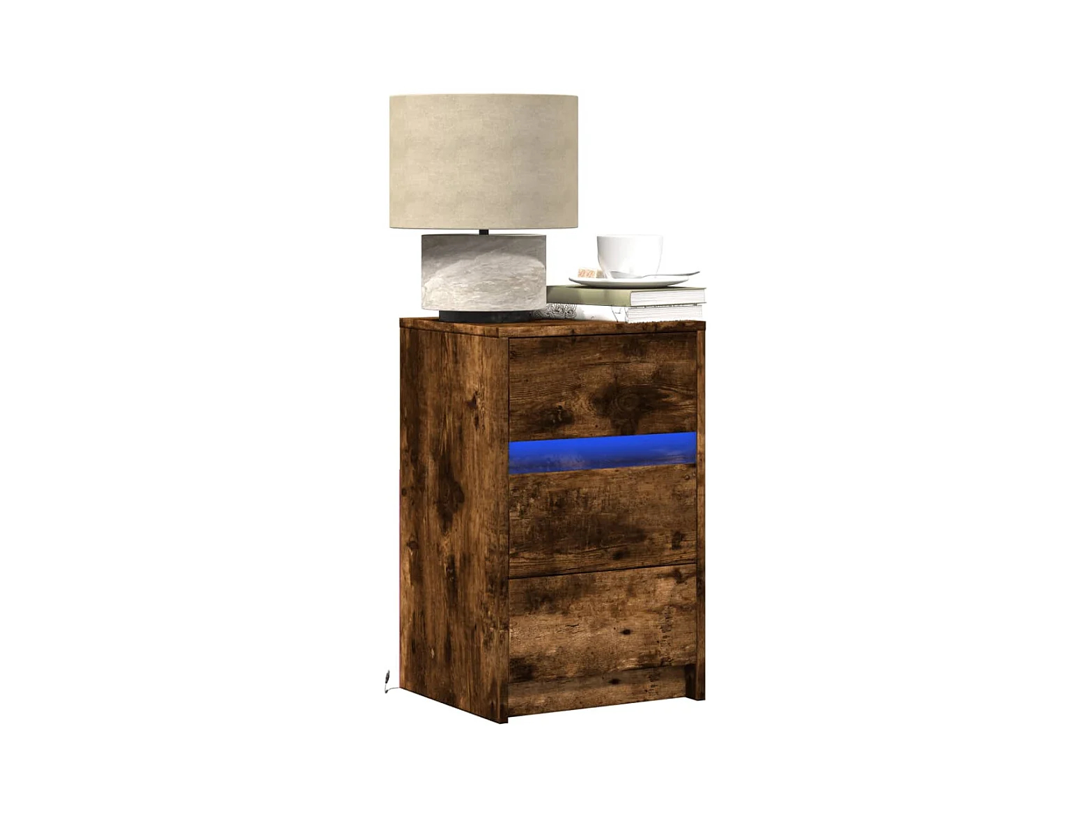 Table de chevet avec lumières LED vieux bois 38x34x50 cm