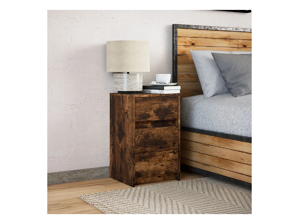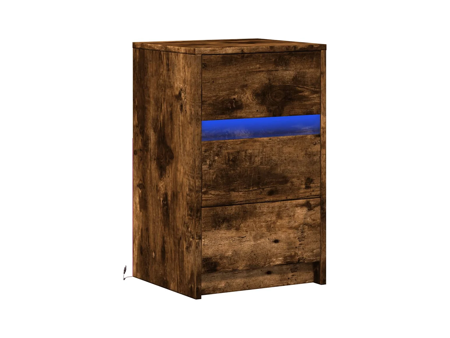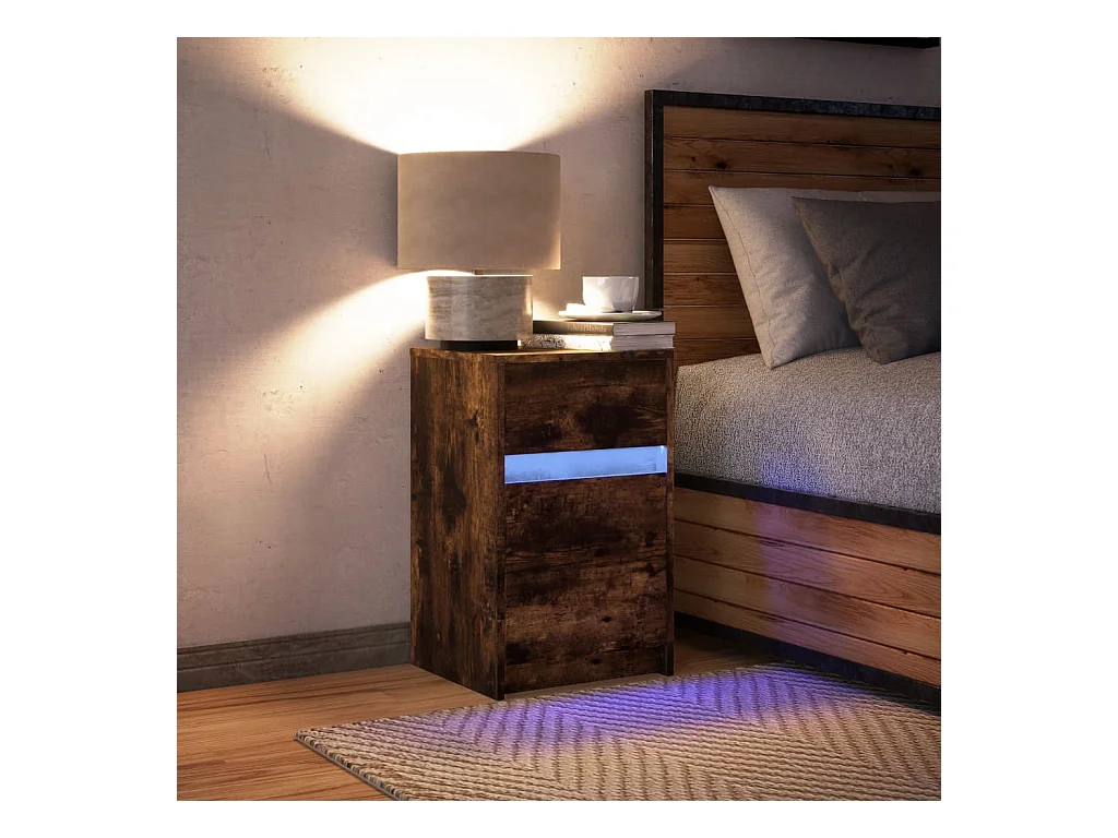 Table de chevet et lumières LED chêne fumé bois d'ingénierie